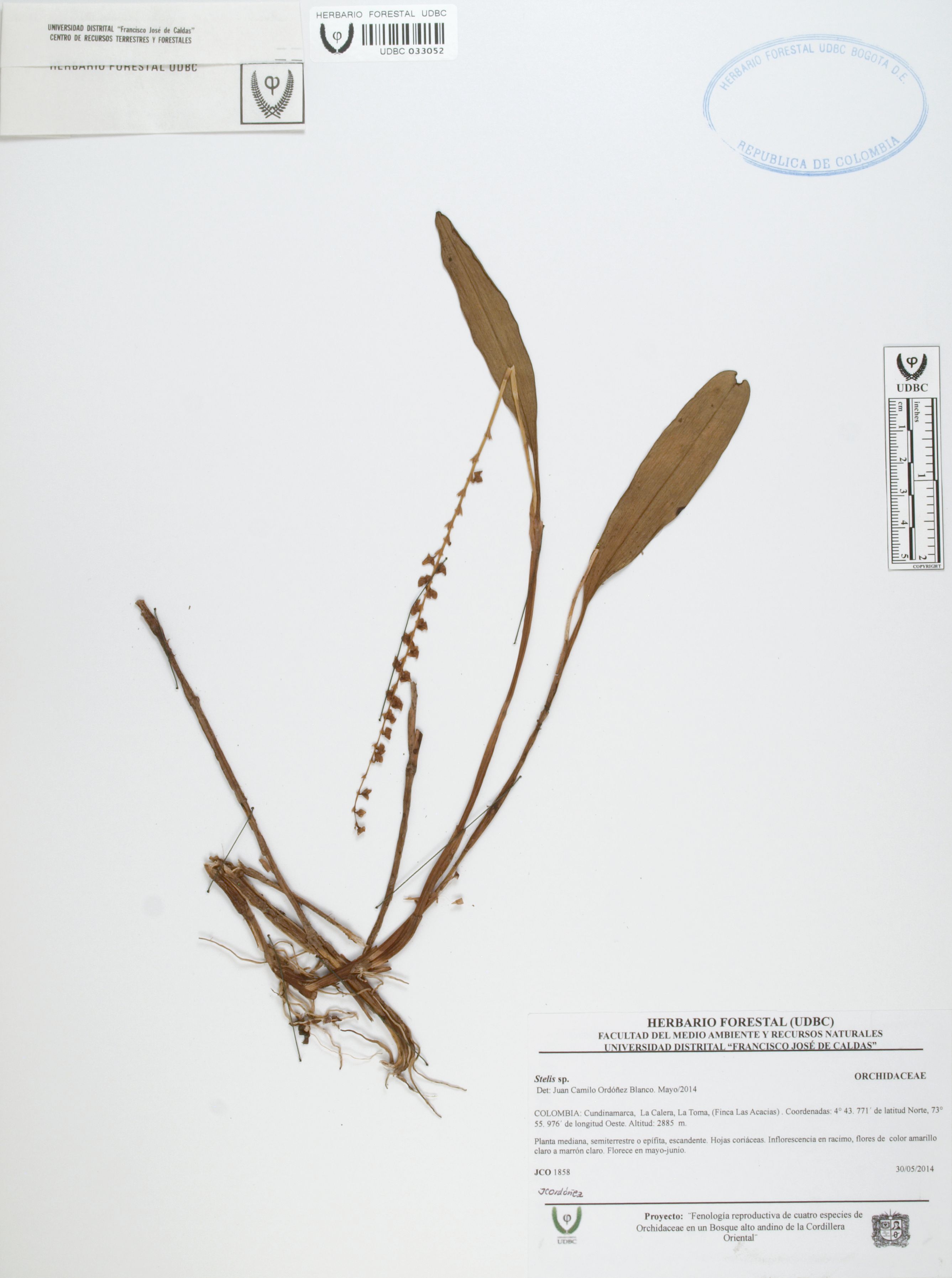 Fotografía del ejemplar Ordóñez, J. 1858, determinado como Stelis sp. en el año 2014
