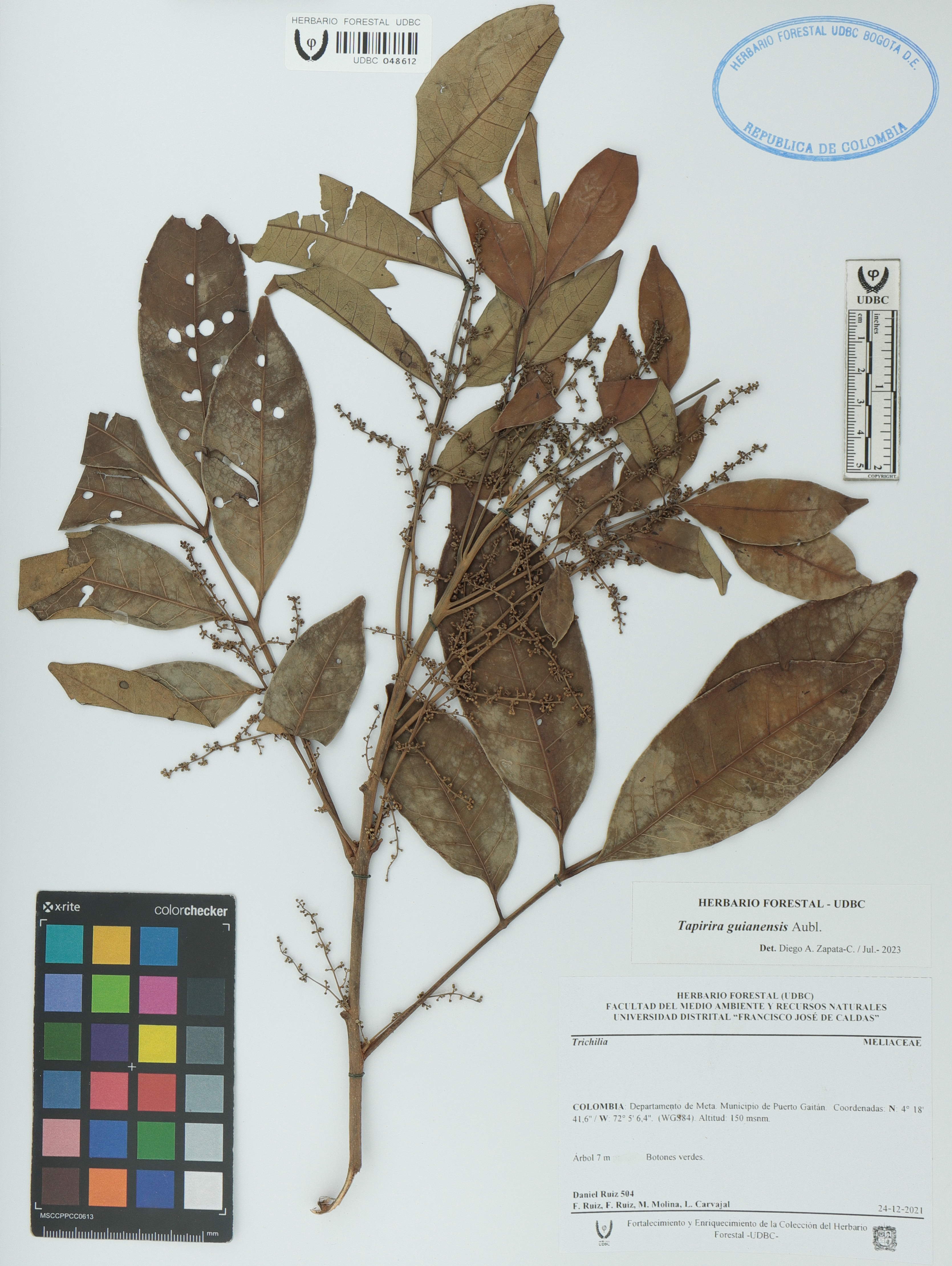 Fotografía del ejemplar Ruiz, Daniel 504, determinado como Tapirira guianensis en el año 2023