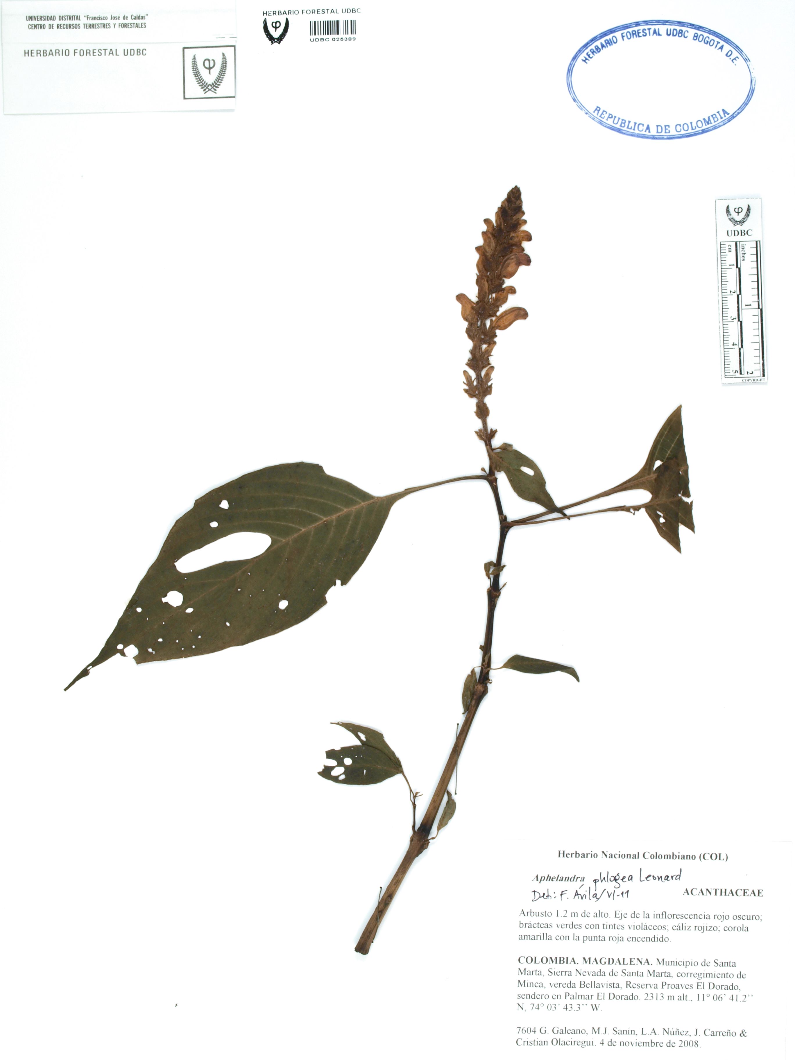 | dc.description | Fotografía del ejemplar Galeano, G. 7604, determinado como Aphelandra phlogea en el año 2011 | |