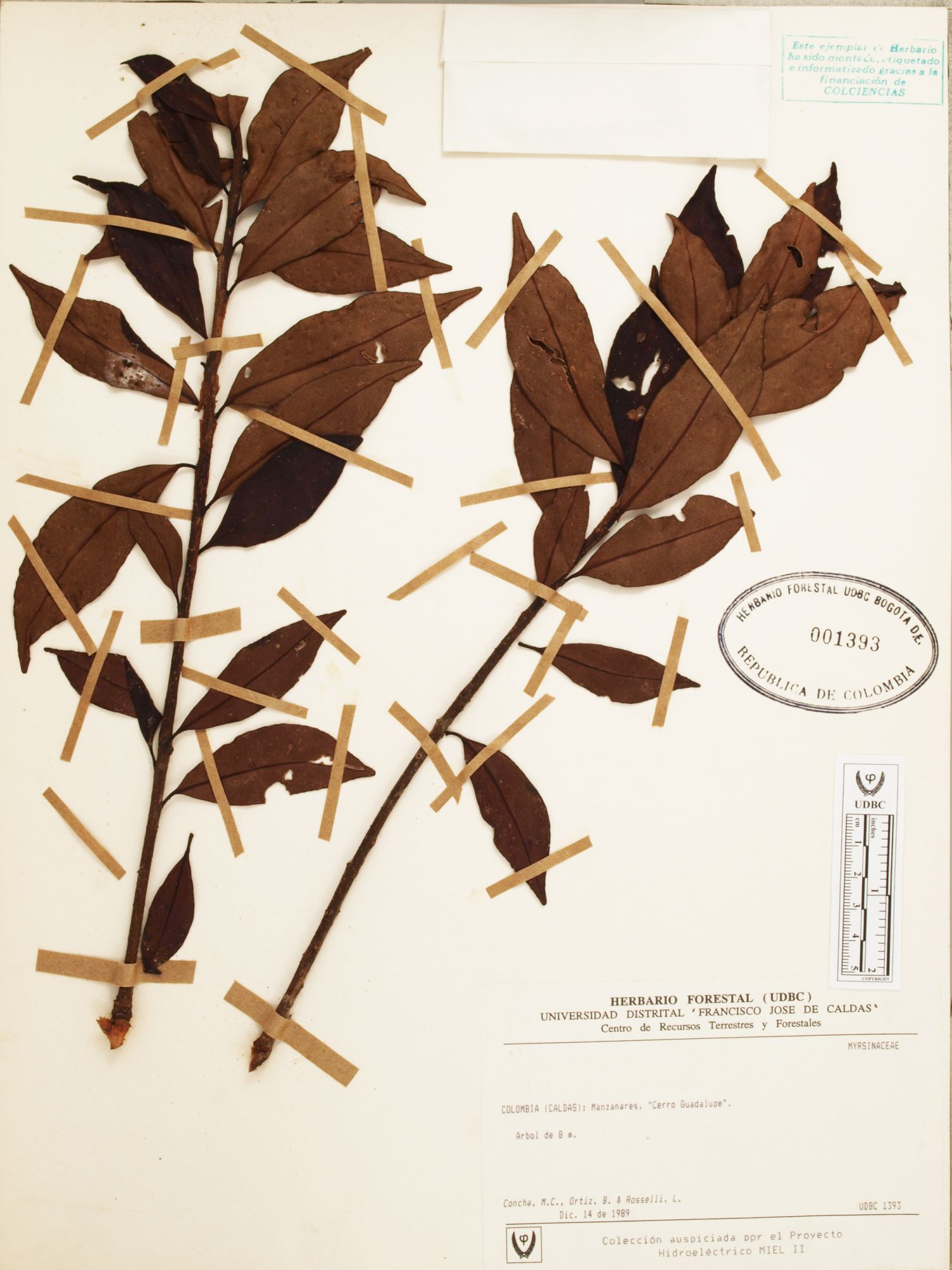 Fotografía del ejemplar Concha, M., determinado como Myrsine sp.