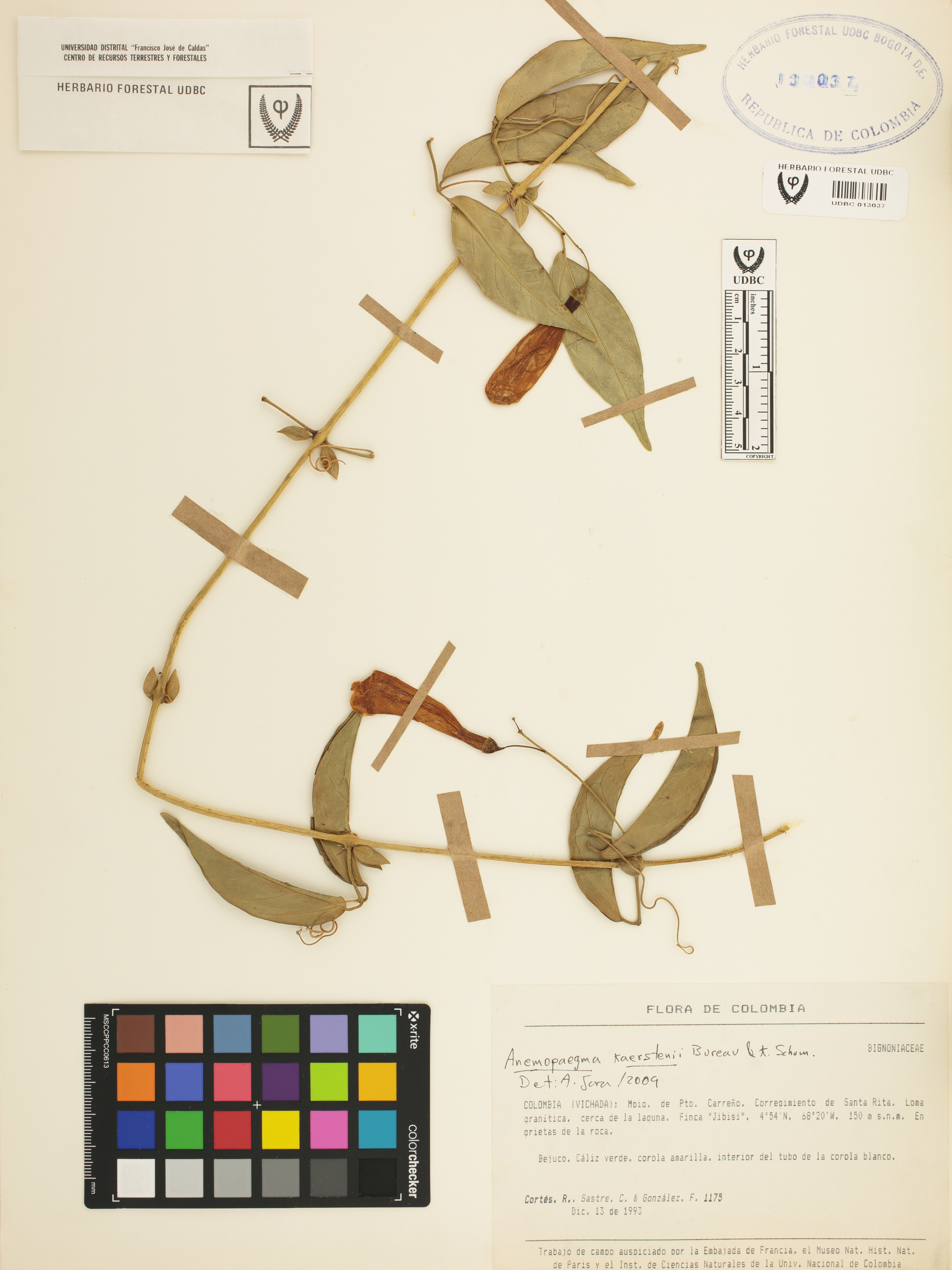 Fotografía del ejemplar Cortés, R. 1175, determinado como Anemopaegma karstenii en el año 2009
