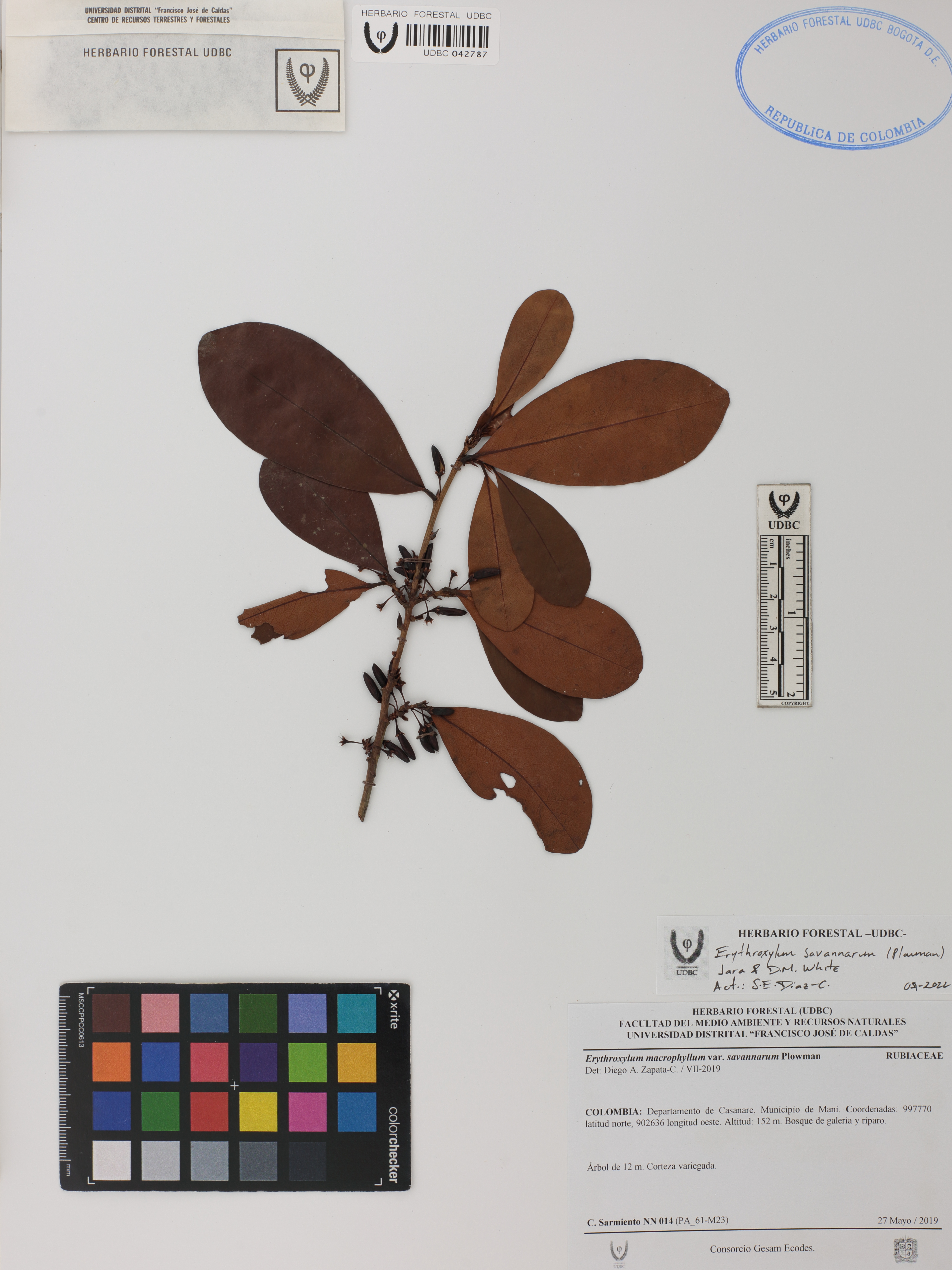 Fotografía del ejemplar Sarmiento, C. 14, determinado como Erythroxylum savannarum en el año 2019
