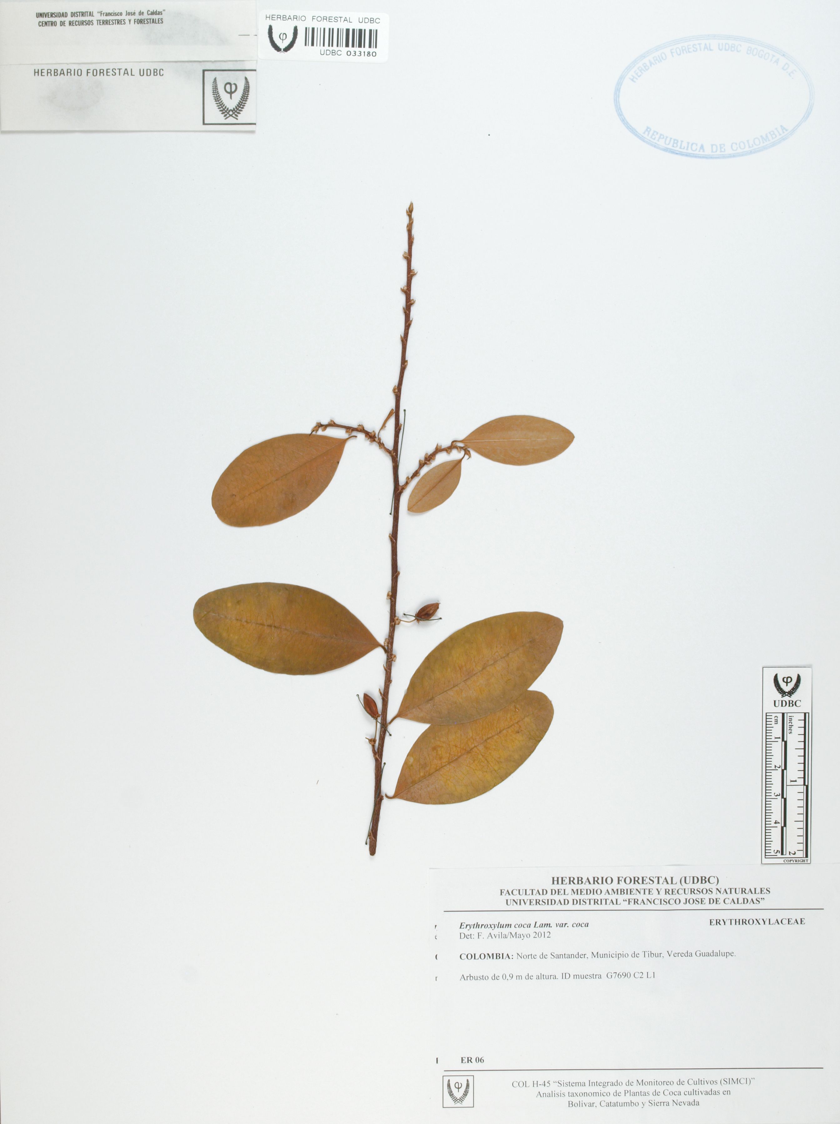 | dc.description | Fotografía del ejemplar SD 6, determinado como Erythroxylum coca var. coca en el año 2012 | |