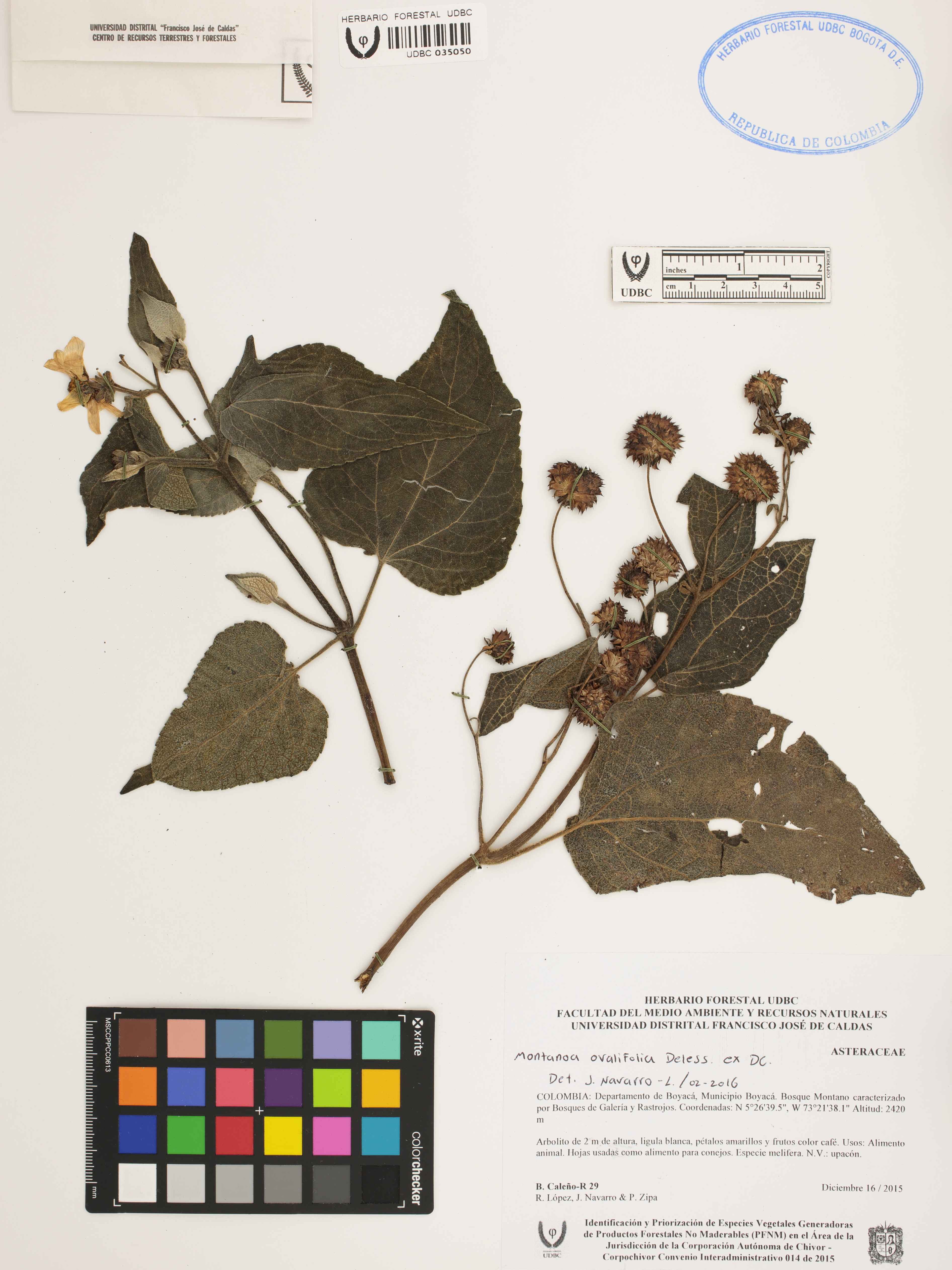 Fotografía del ejemplar Caleño-R., B. 29, determinado como Montanoa ovalifolia en el año 2016