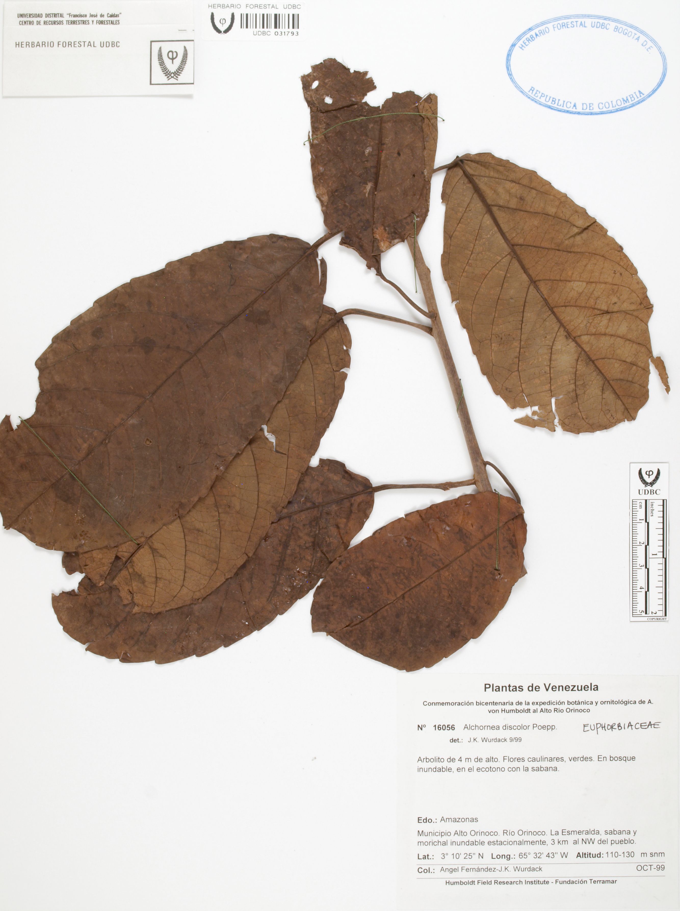 Fotografía del ejemplar Fernández, A. 16056, determinado como Alchornea discolor en el año 1999