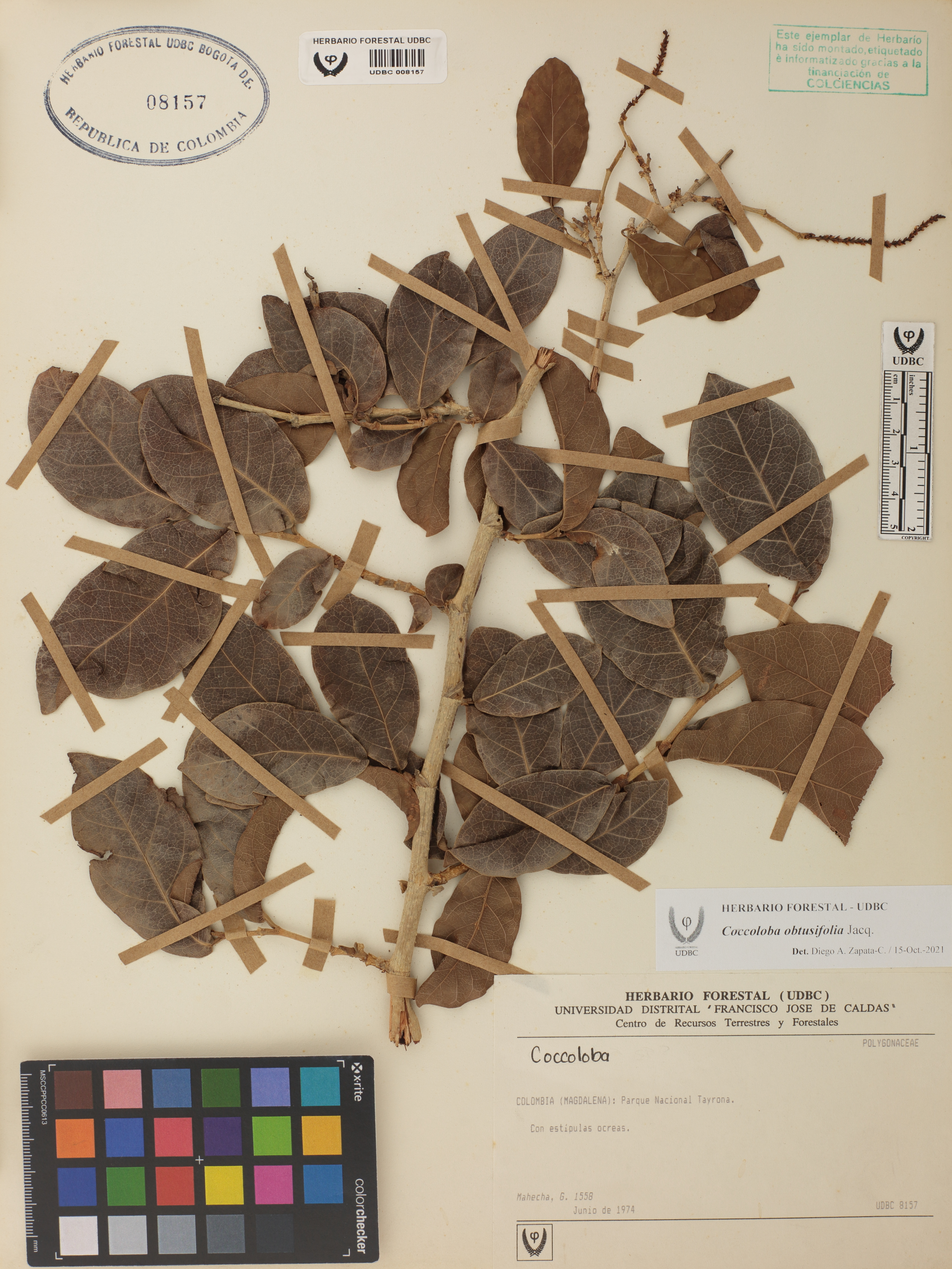 Fotografía del ejemplar Mahecha, G. 1558, determinado como Coccoloba obtusifolia en el año 2021