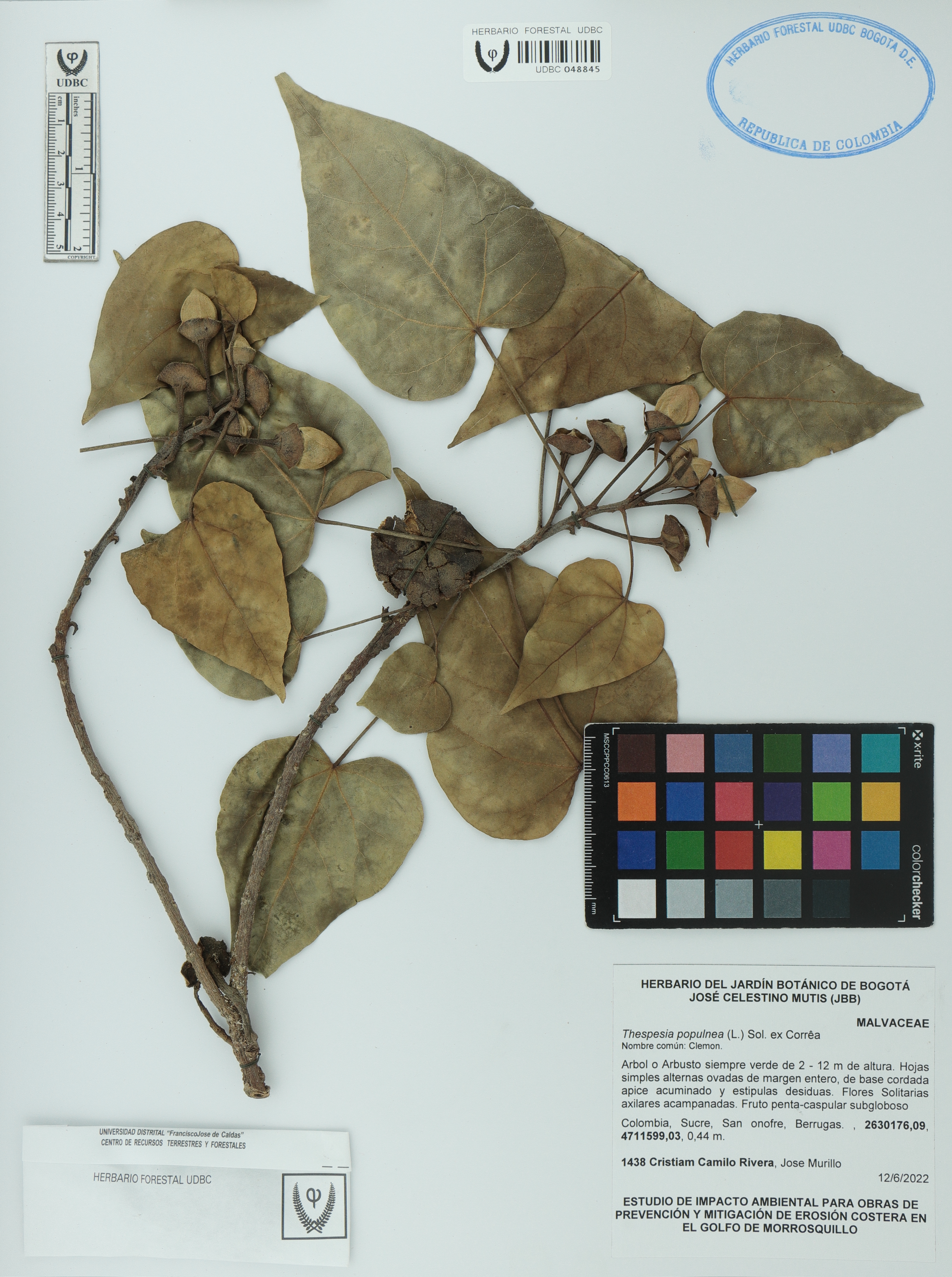 | dc.description | Fotografía del ejemplar Rivera, C. 1438, determinado como Thespesia populnea en el año 2022 | |