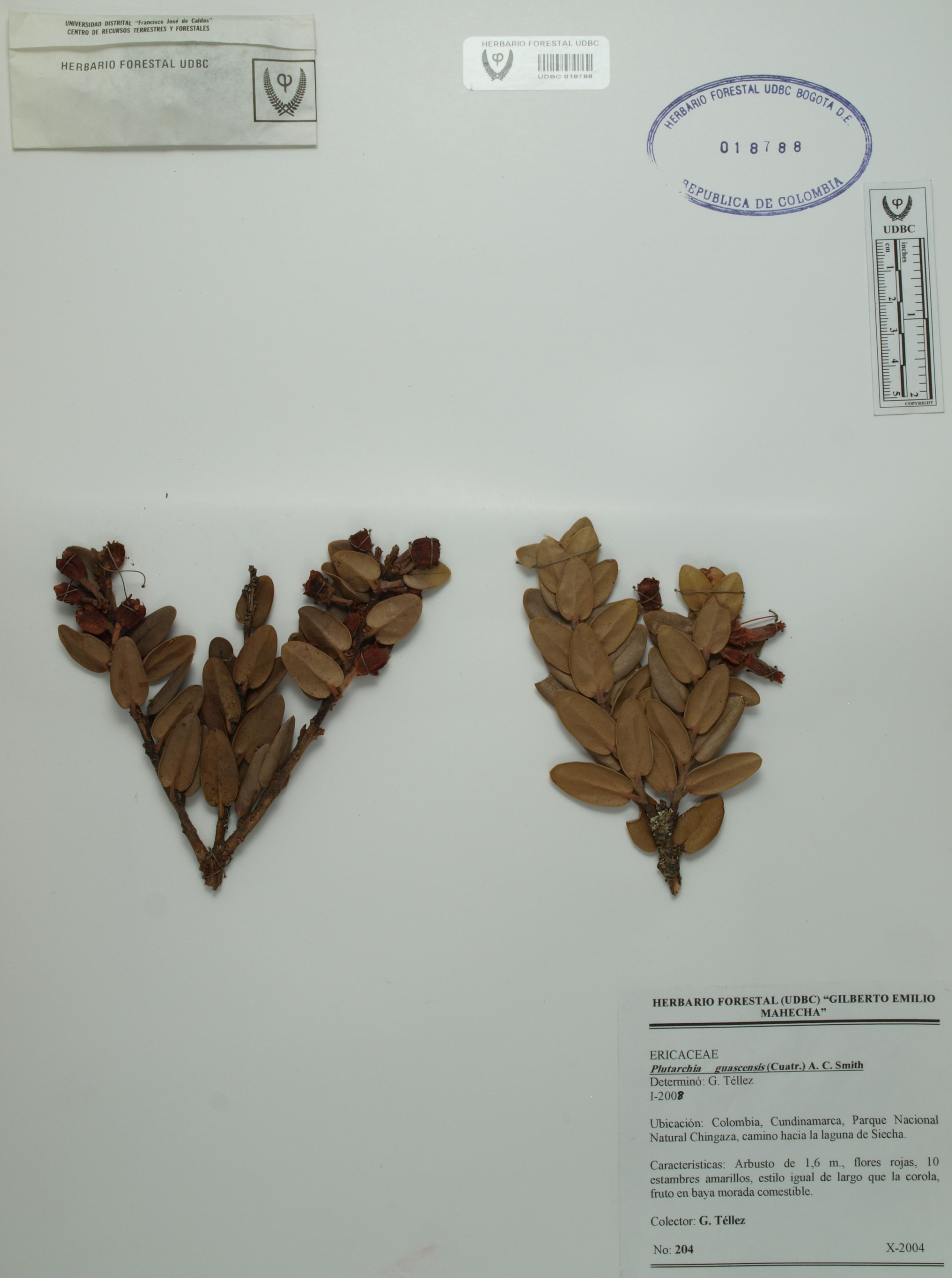 Fotografía del ejemplar Téllez, G. 204, determinado como Plutarchia guascensis en el año 2008