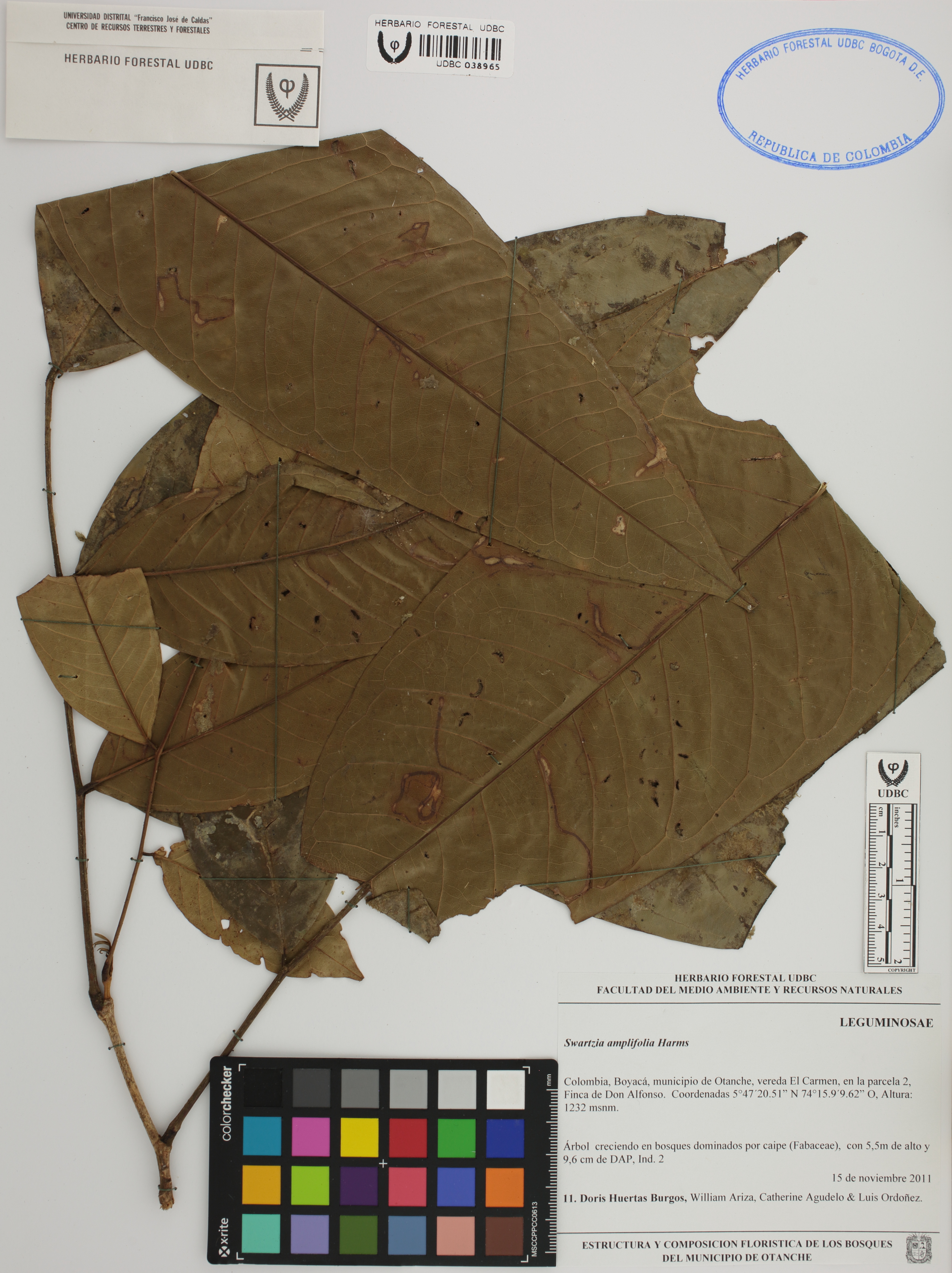 Fotografía del ejemplar Huertas, D. 11, determinado como Swartzia amplifolia