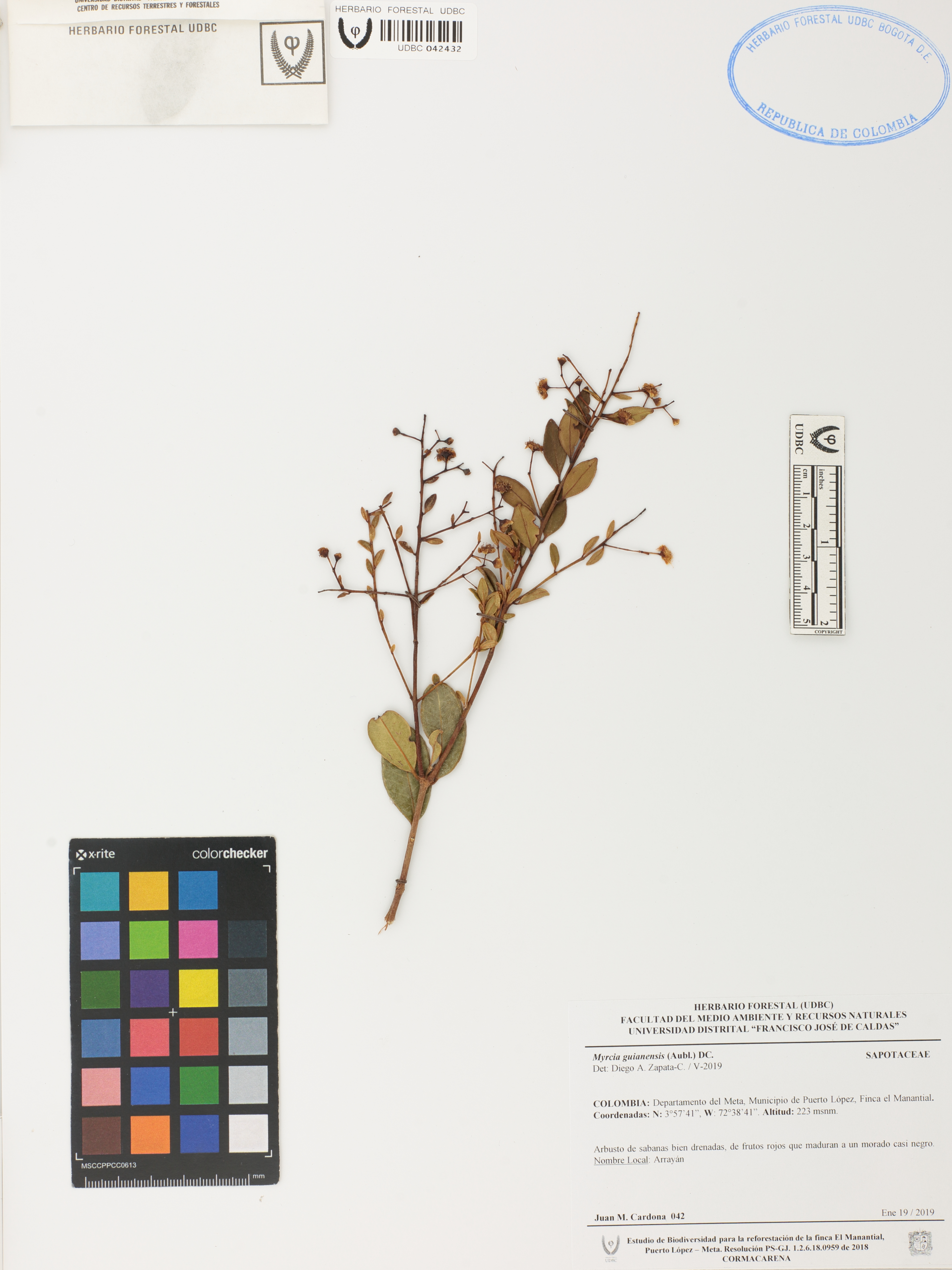Fotografía del ejemplar Cardona, J. 42, determinado como Myrcia guianensis en el año 2019
