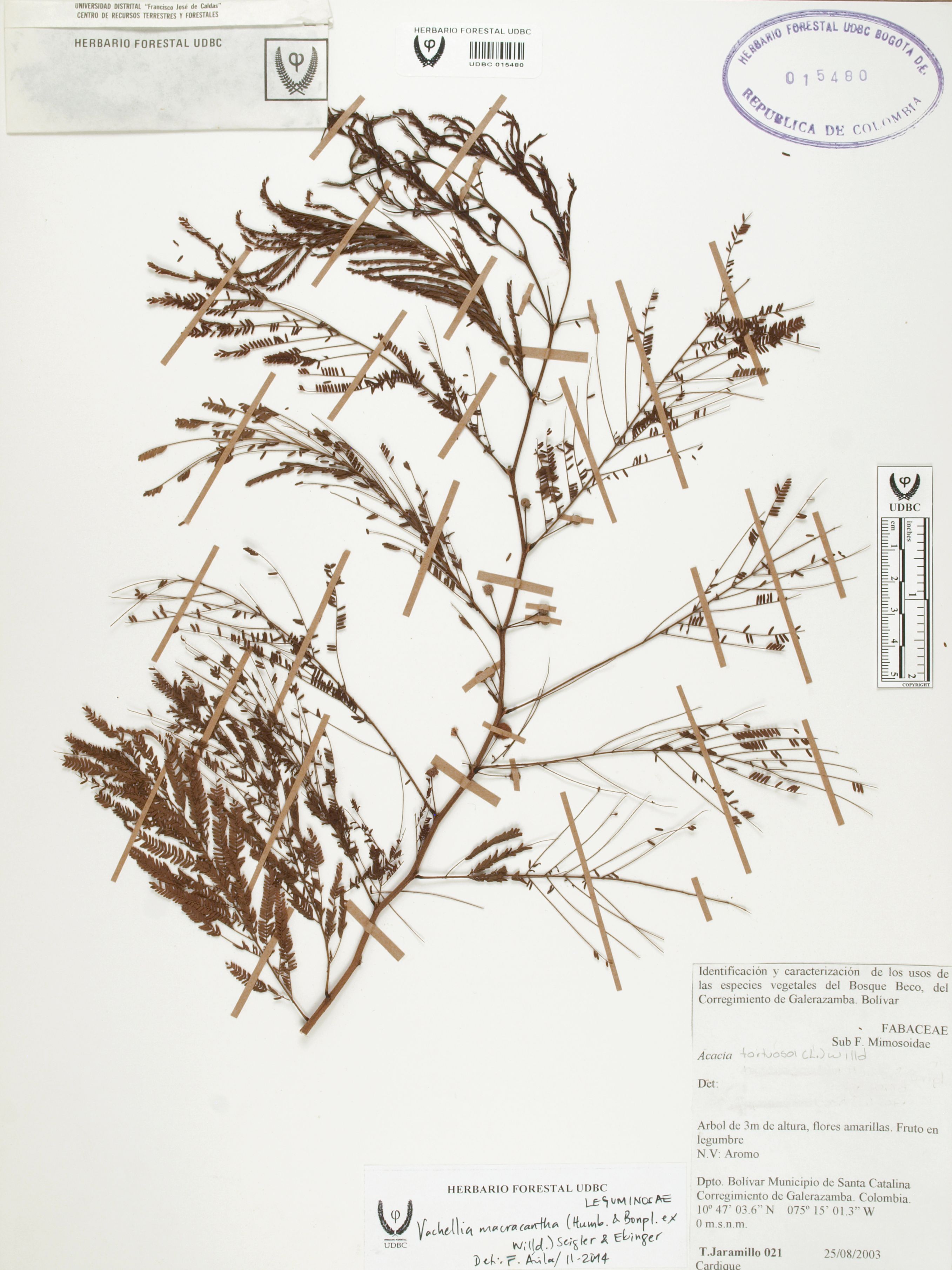 | dc.description | Fotografía del ejemplar Jaramillo, T. 21, determinado como Vachellia macracantha en el año 2014 | |