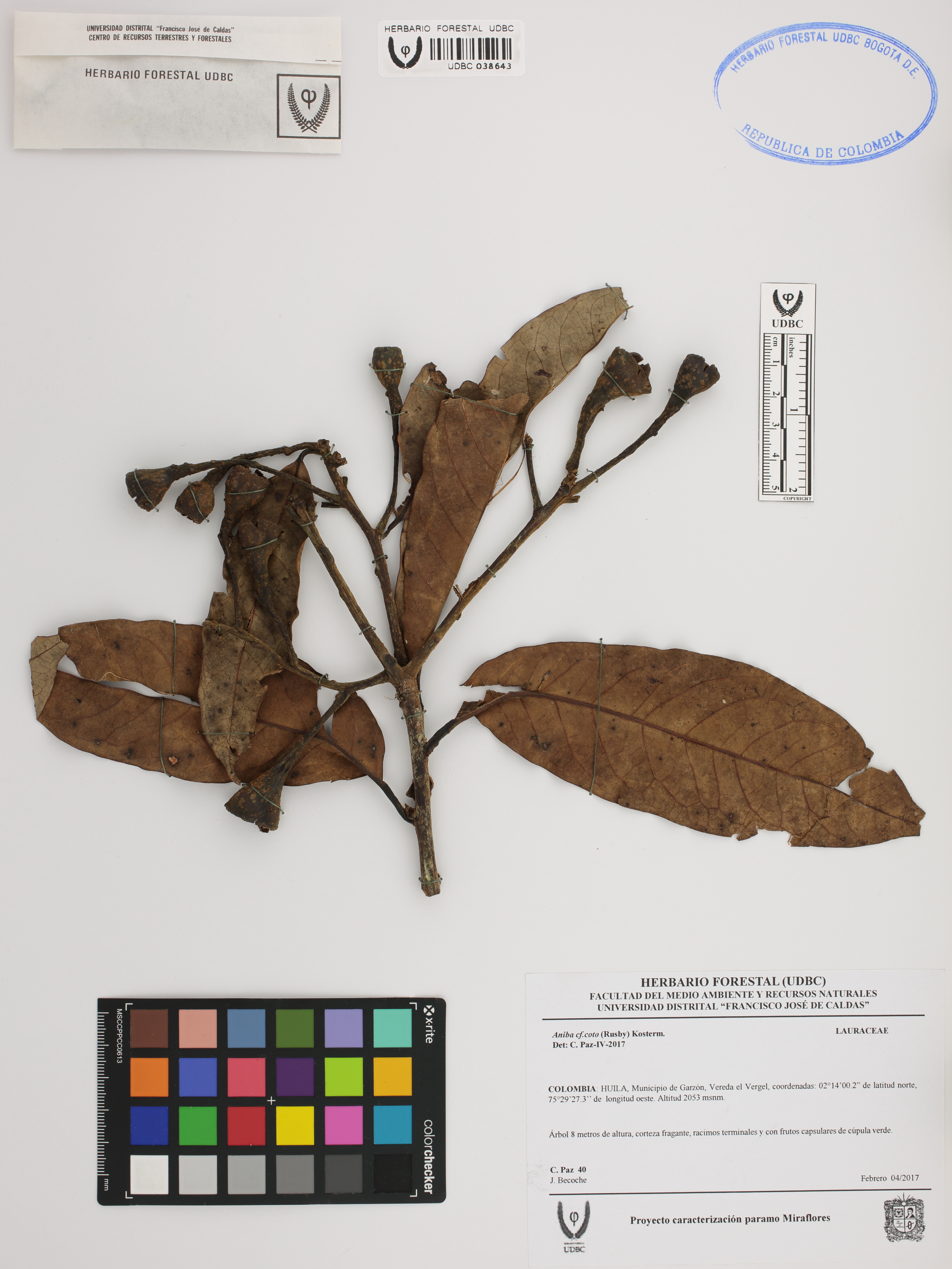 | dc.description | Fotografía del ejemplar Paz, C. 40, determinado como Aniba coto en el año 2017 | |