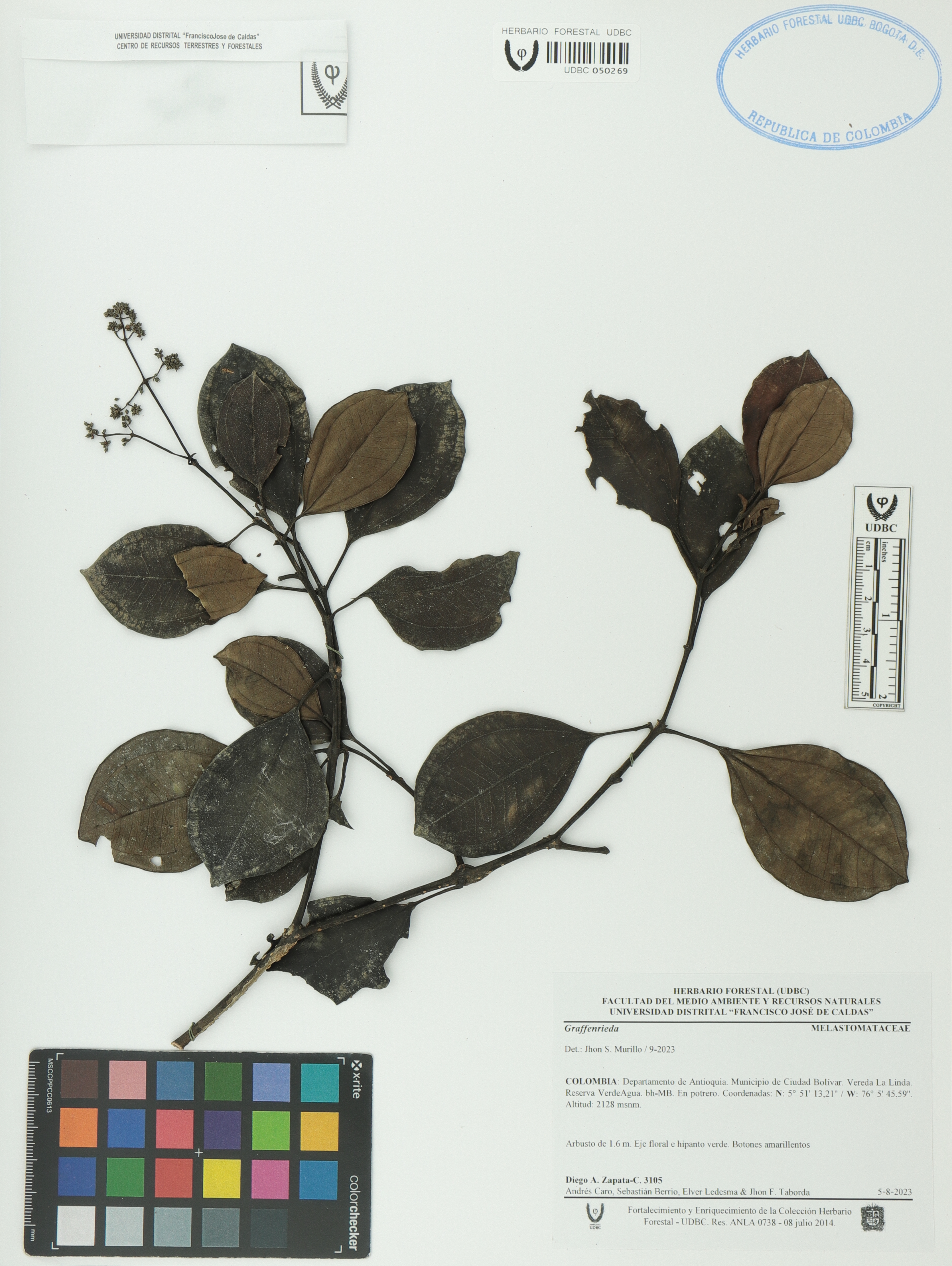 Fotografía del ejemplar Zapata-C., D. 3105, determinado como Graffenrieda sp. en el año 2023