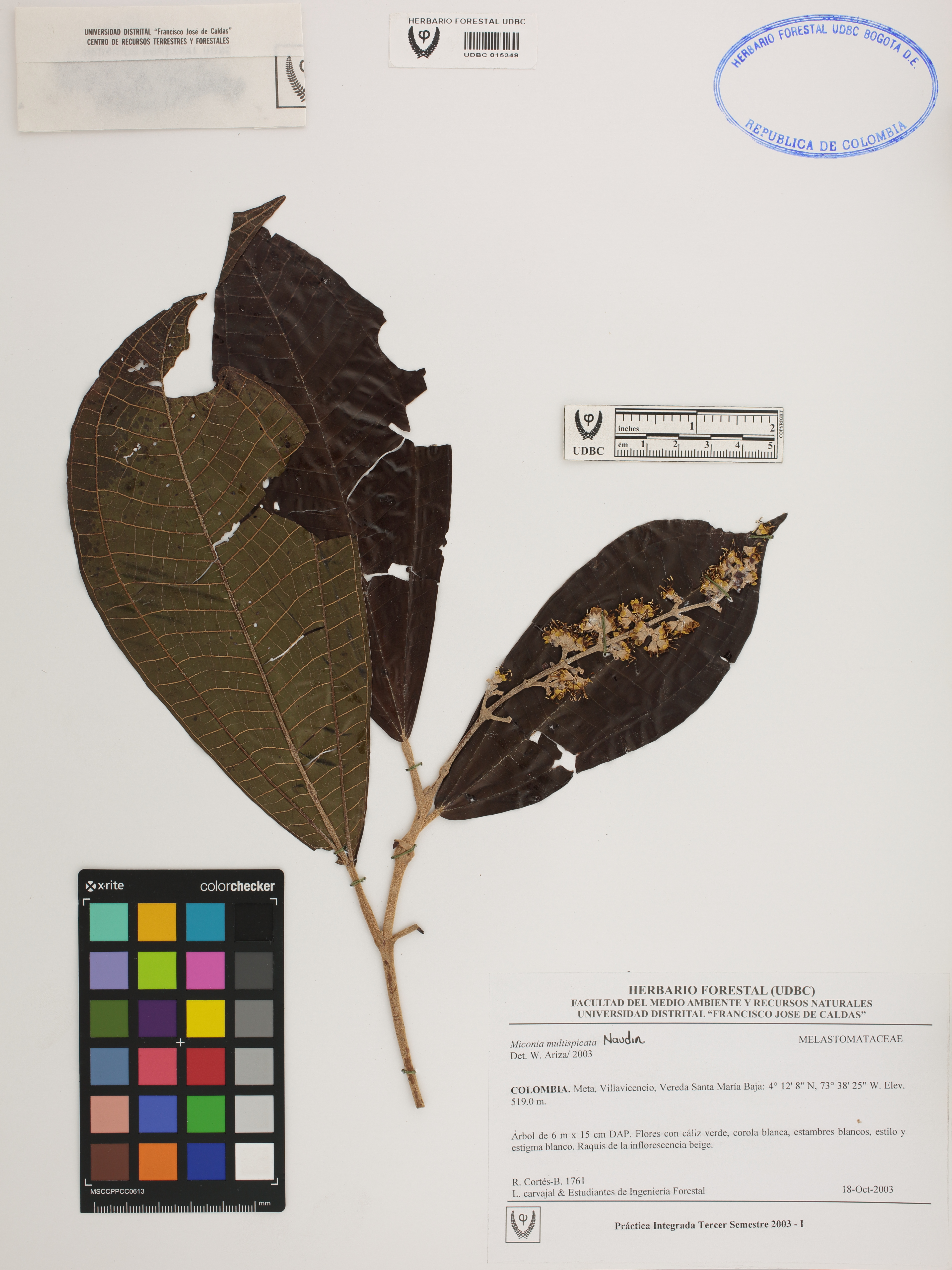 Fotografía del ejemplar Cortés-B., R. 1761, determinado como Miconia multispicata en el año 2003