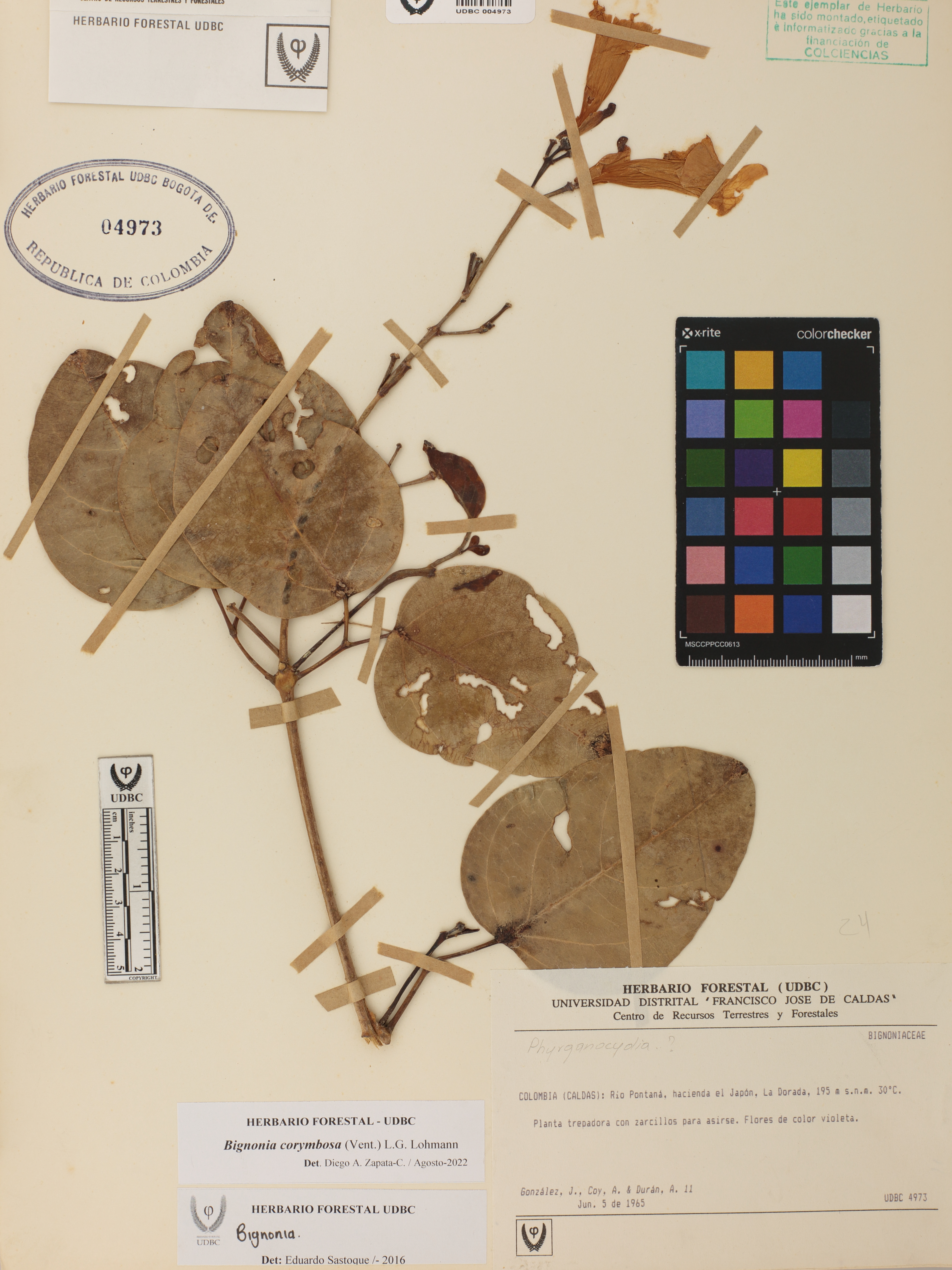 Fotografía del ejemplar González, J. 11, determinado como Bignonia corymbosa en el año 2022