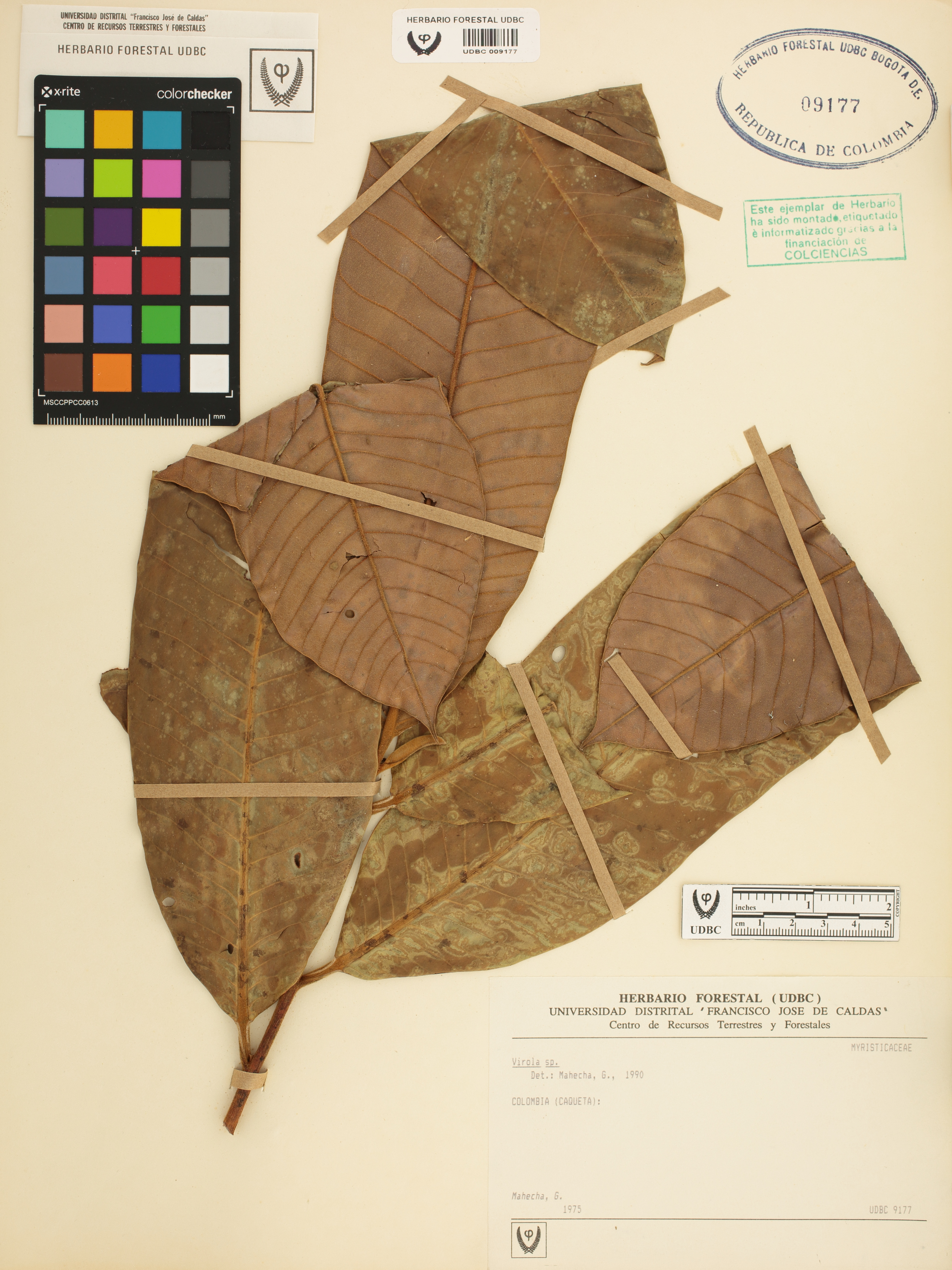 Fotografía del ejemplar Mahecha, G., determinado como Virola sp. en el año 1990