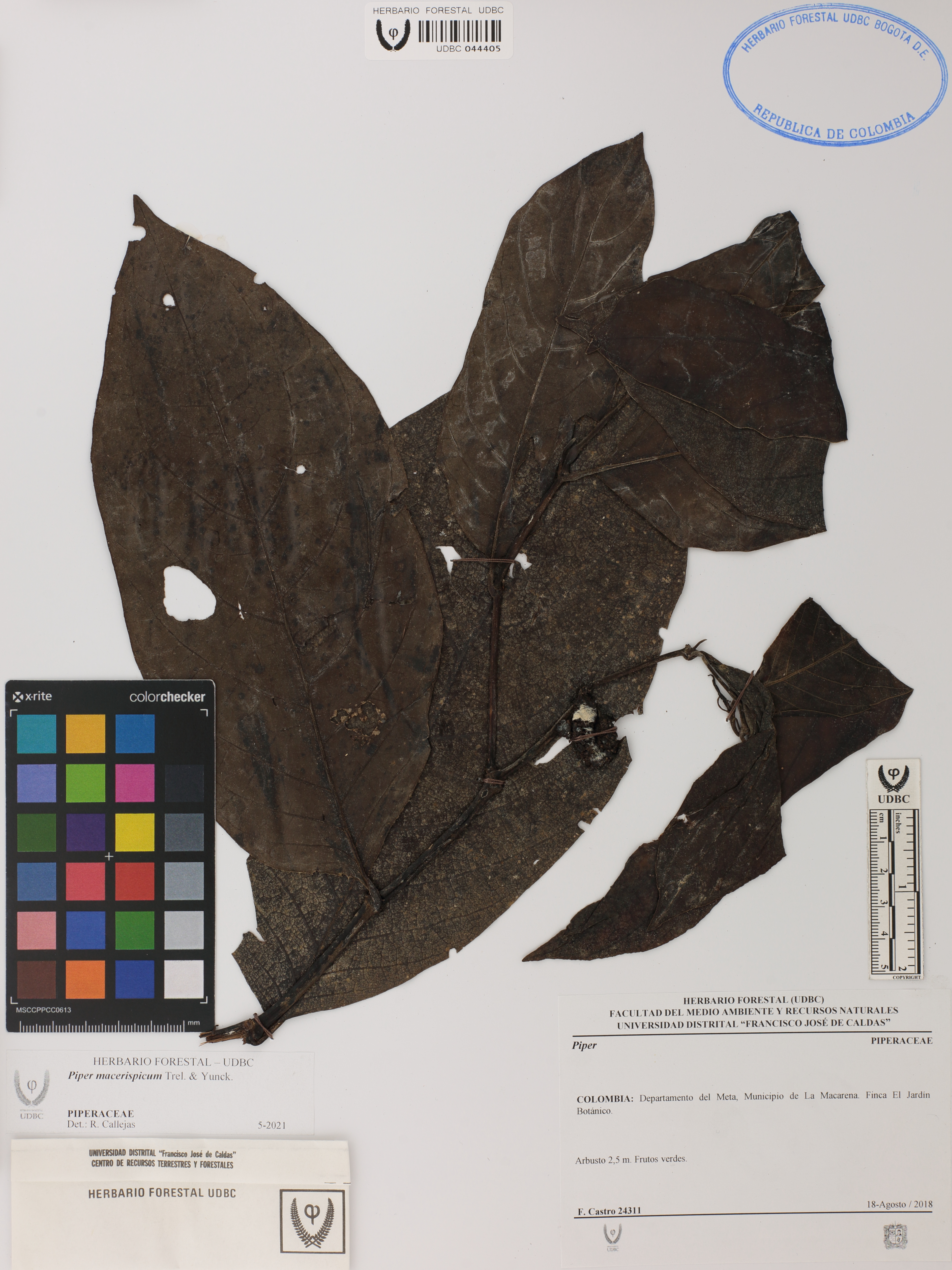 | dc.description | Fotografía del ejemplar Castro, F. 24311, determinado como Piper macerispicum en el año 2021 | |