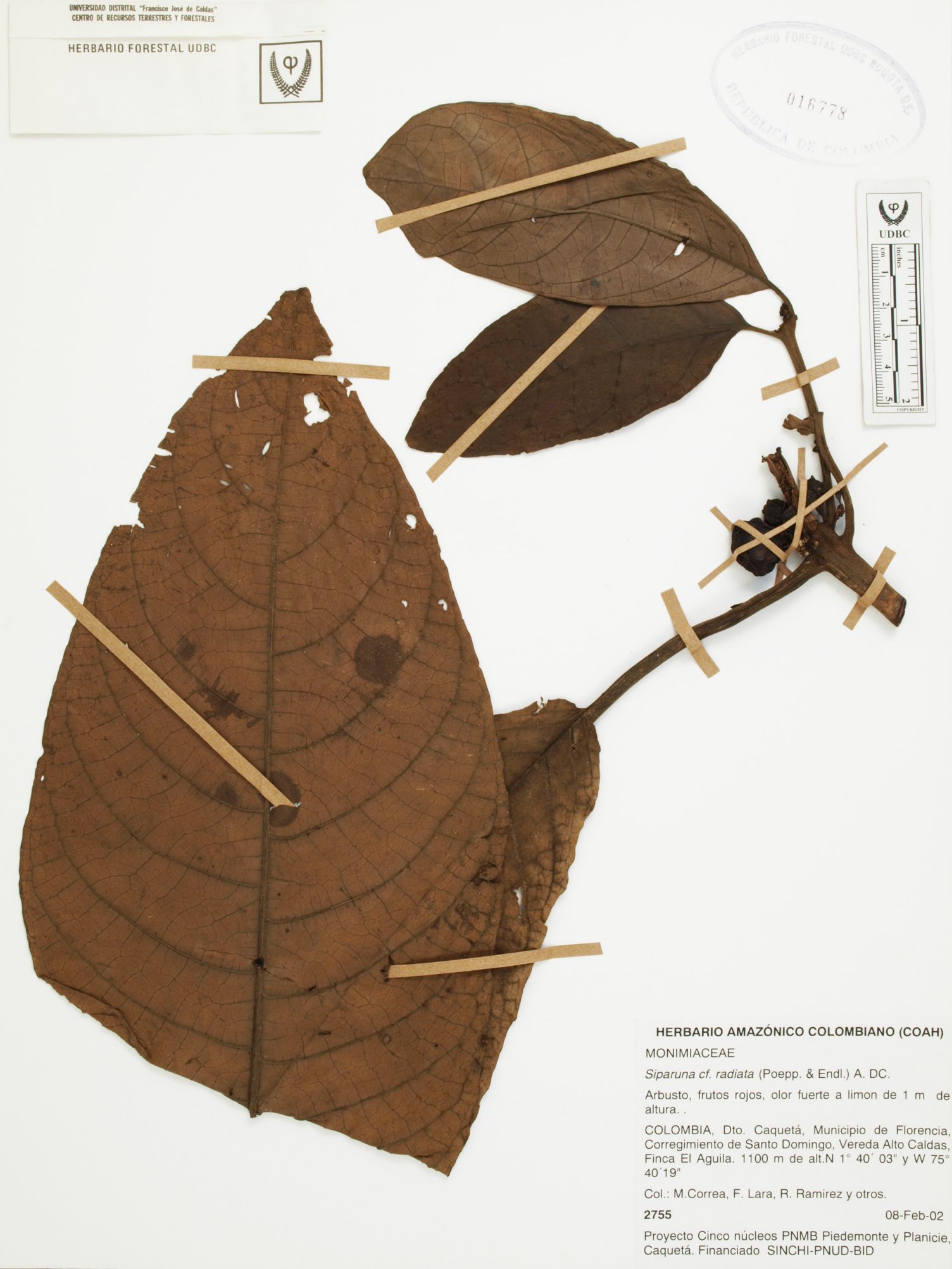 Fotografía del ejemplar Jiménez, L. 566, determinado como Hoffmannia glabra en el año 2004