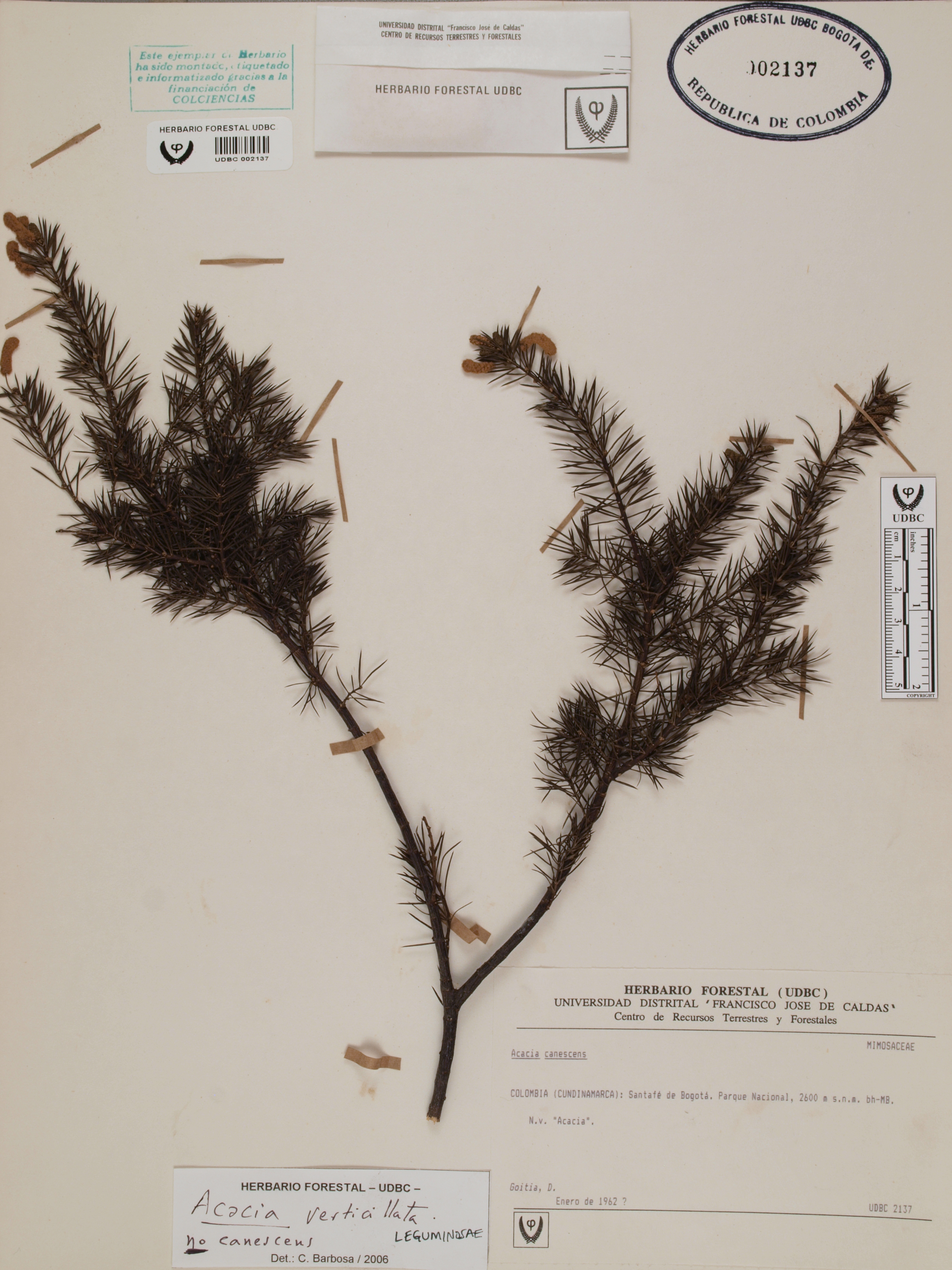 Fotografía del ejemplar Goitia, D., determinado como Acacia verticillata en el año 2006