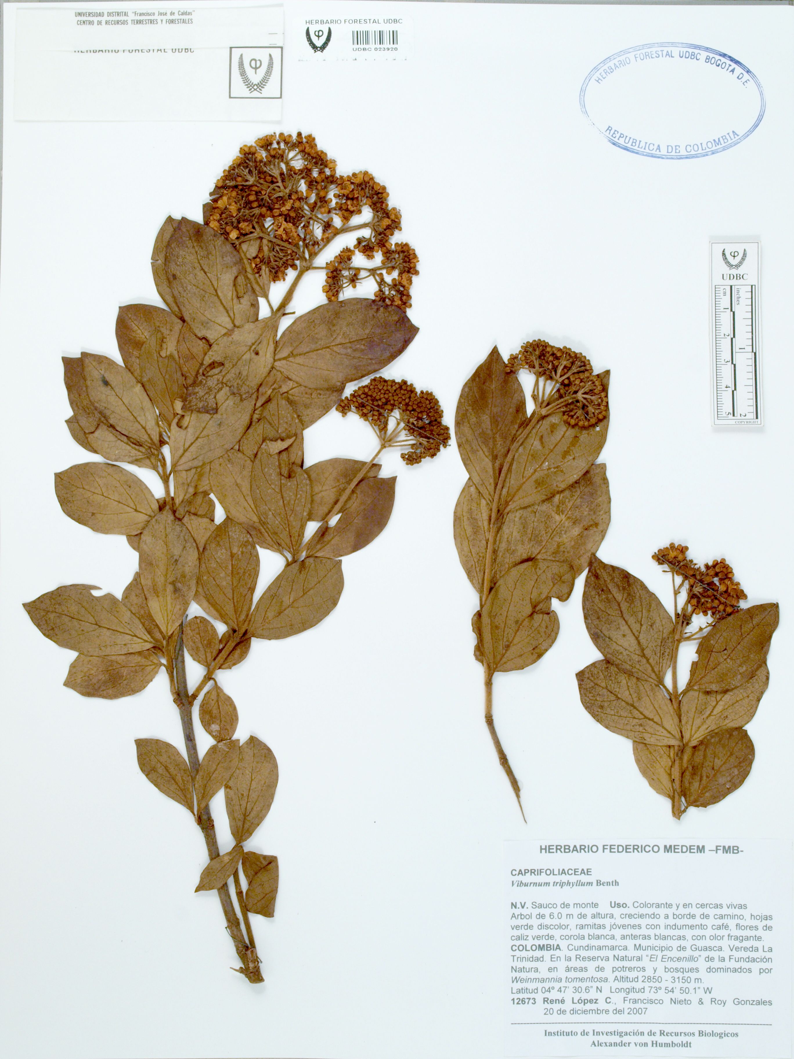 | dc.description | Fotografía del ejemplar López, R. 12673, determinado como Viburnum triphyllum | |