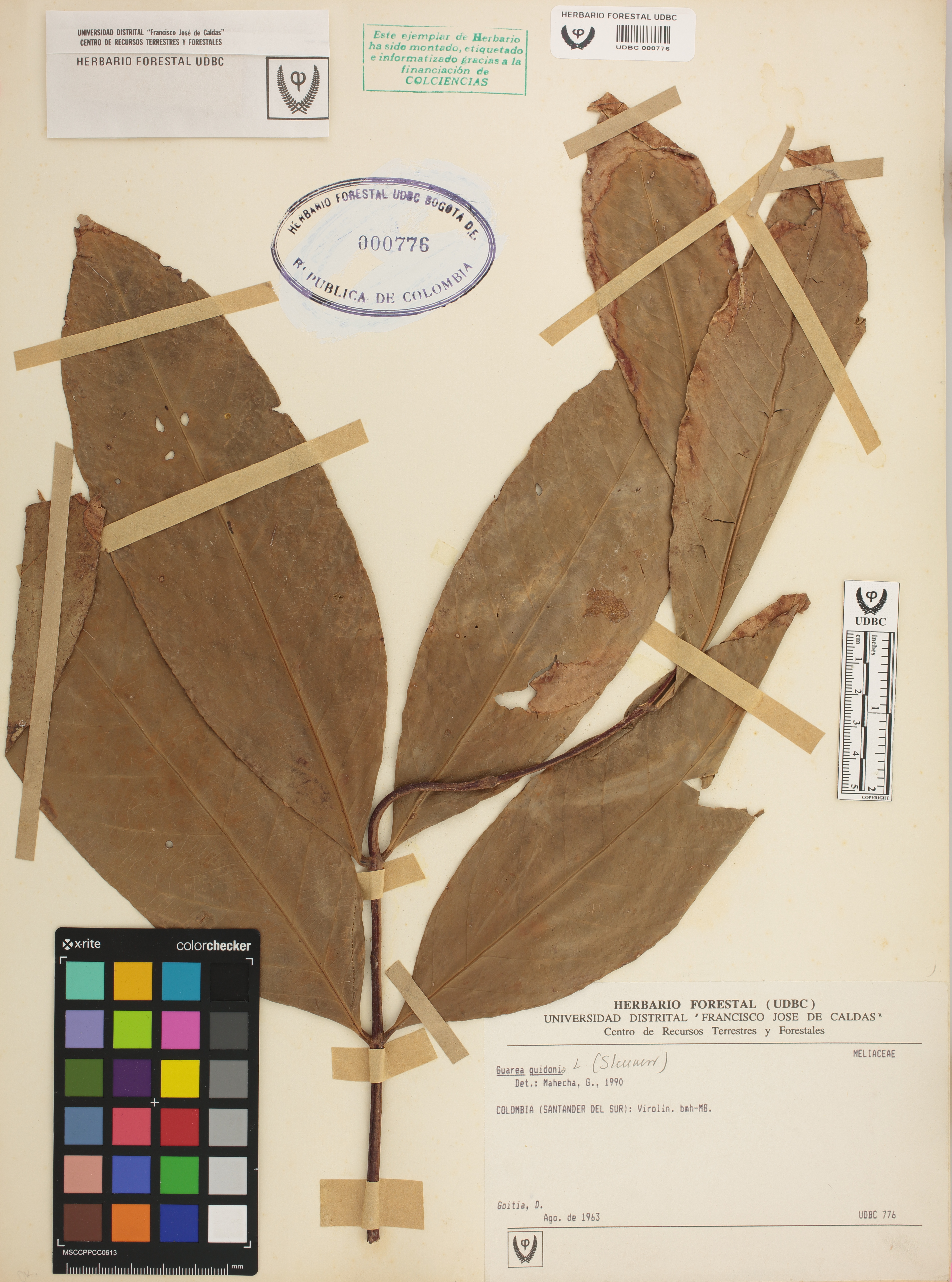 Fotografía del ejemplar Goitia, D., determinado como Guarea guidonia en el año 1990