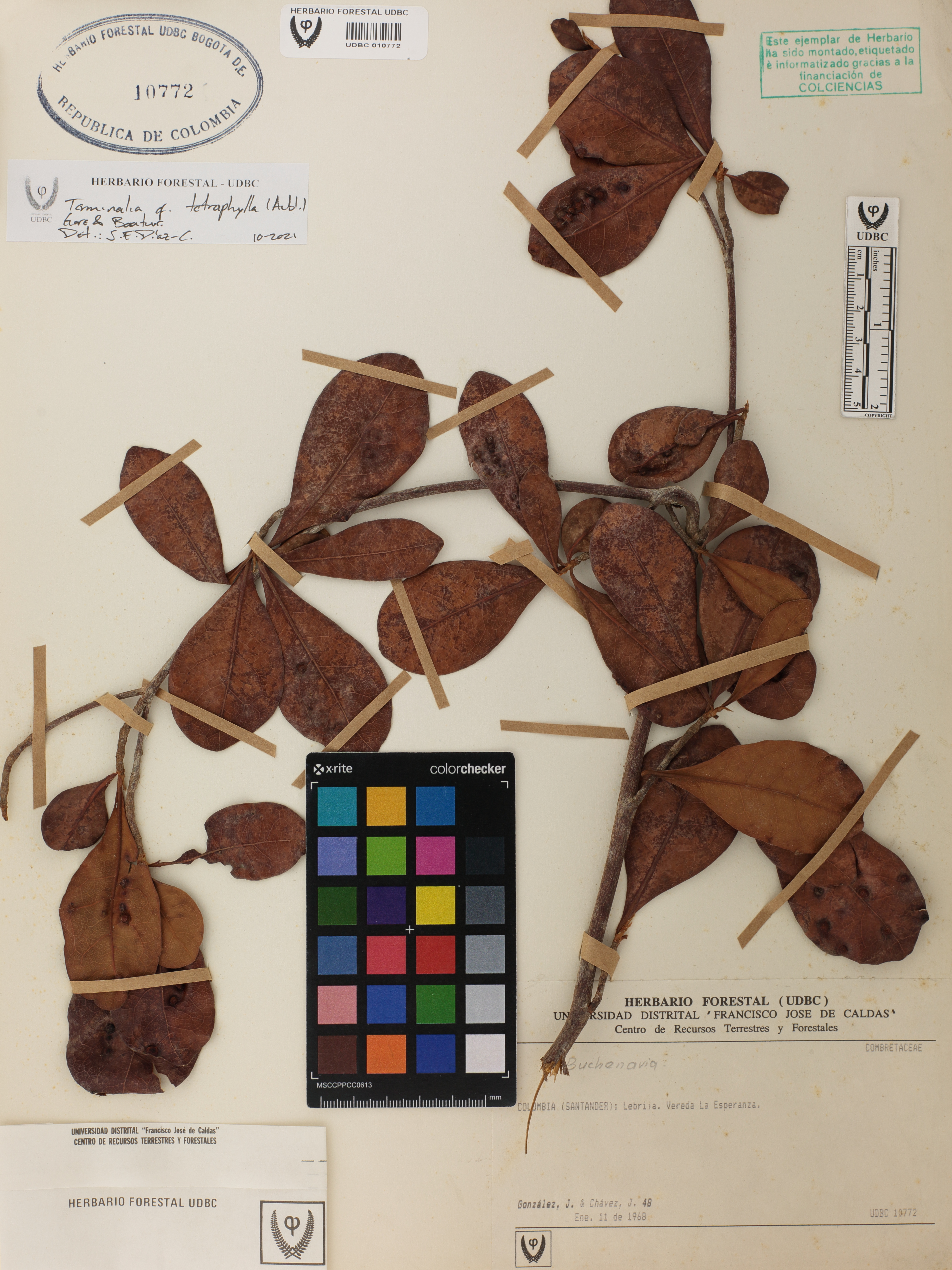 Fotografía del ejemplar González, J. 48, determinado como Terminalia tetraphylla en el año 2021