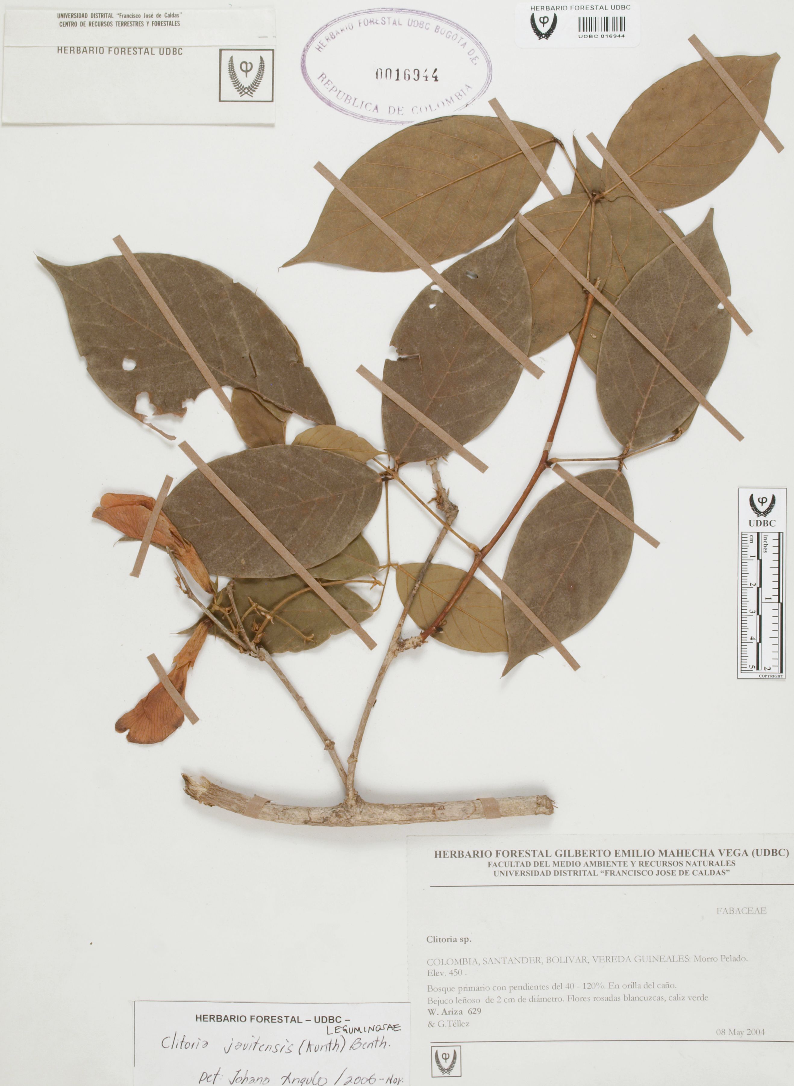 | dc.description | Fotografía del ejemplar Ariza, W. 629, determinado como Clitoria javitensis en el año 2006 | |