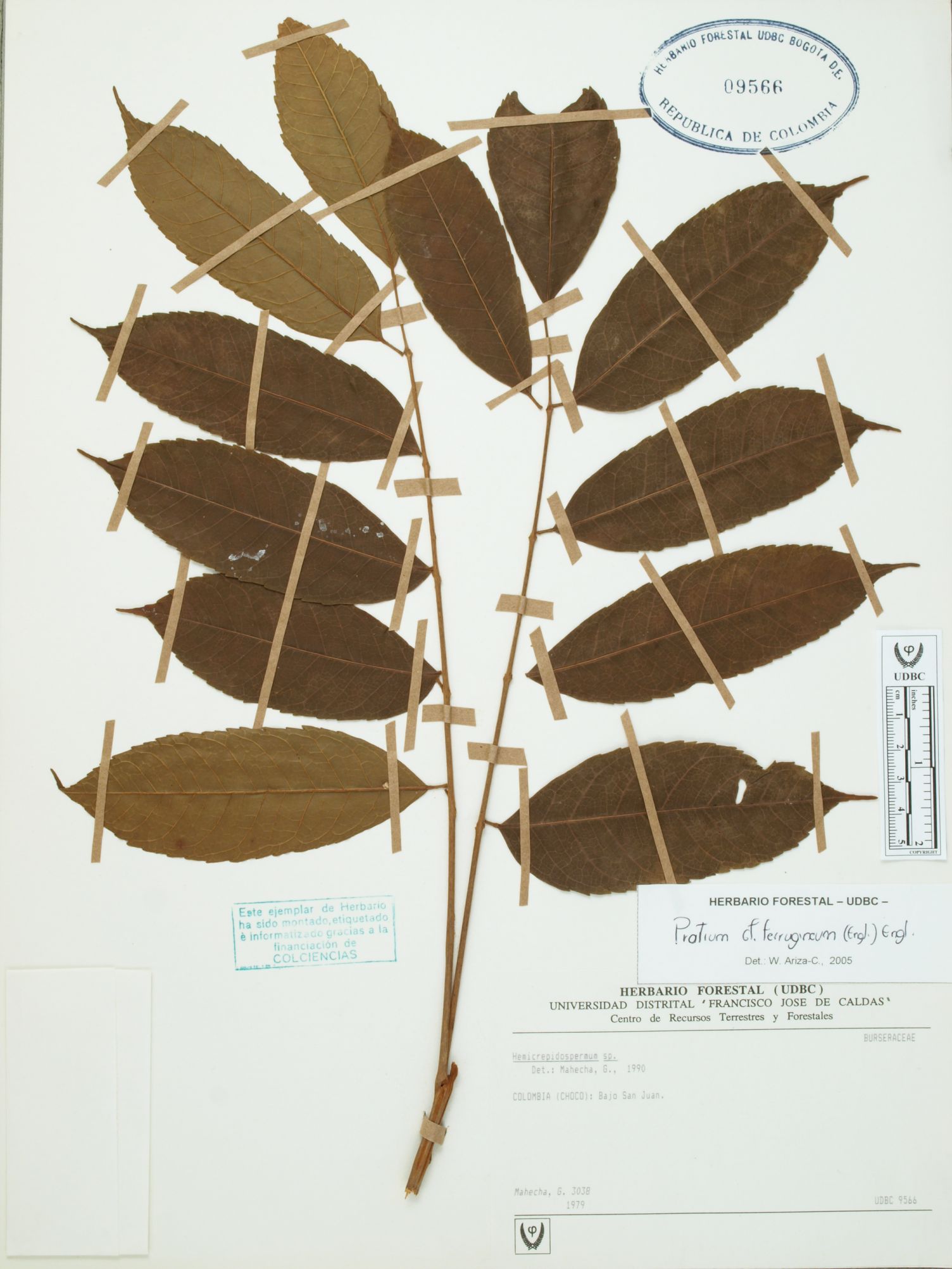 Fotografía del ejemplar Mahecha, G. 3038, determinado como Protium ferrugineum en el año 2005