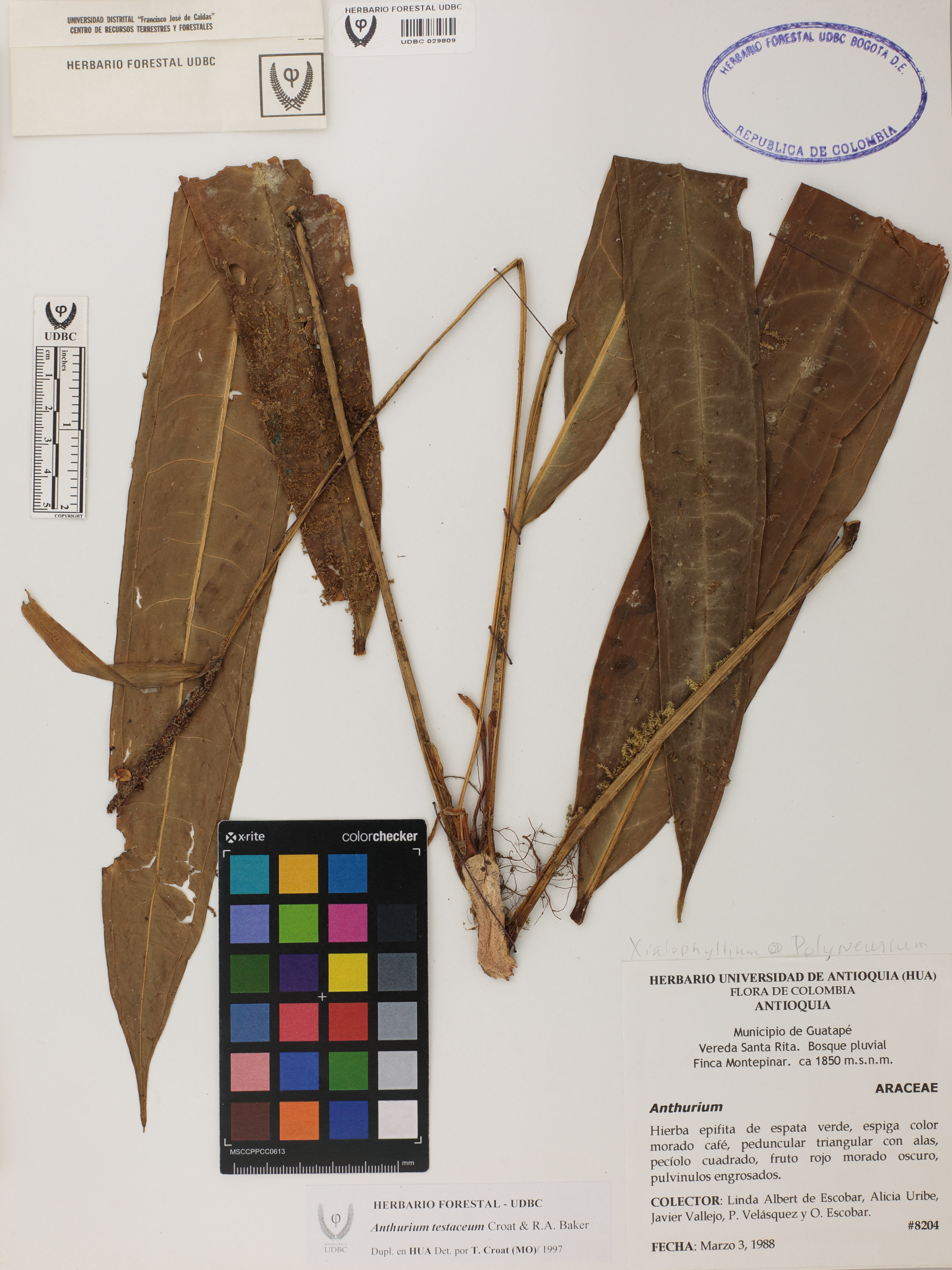 Fotografía del ejemplar Albert de E., L. 8204, determinado como Anthurium testaceum en el año 1997