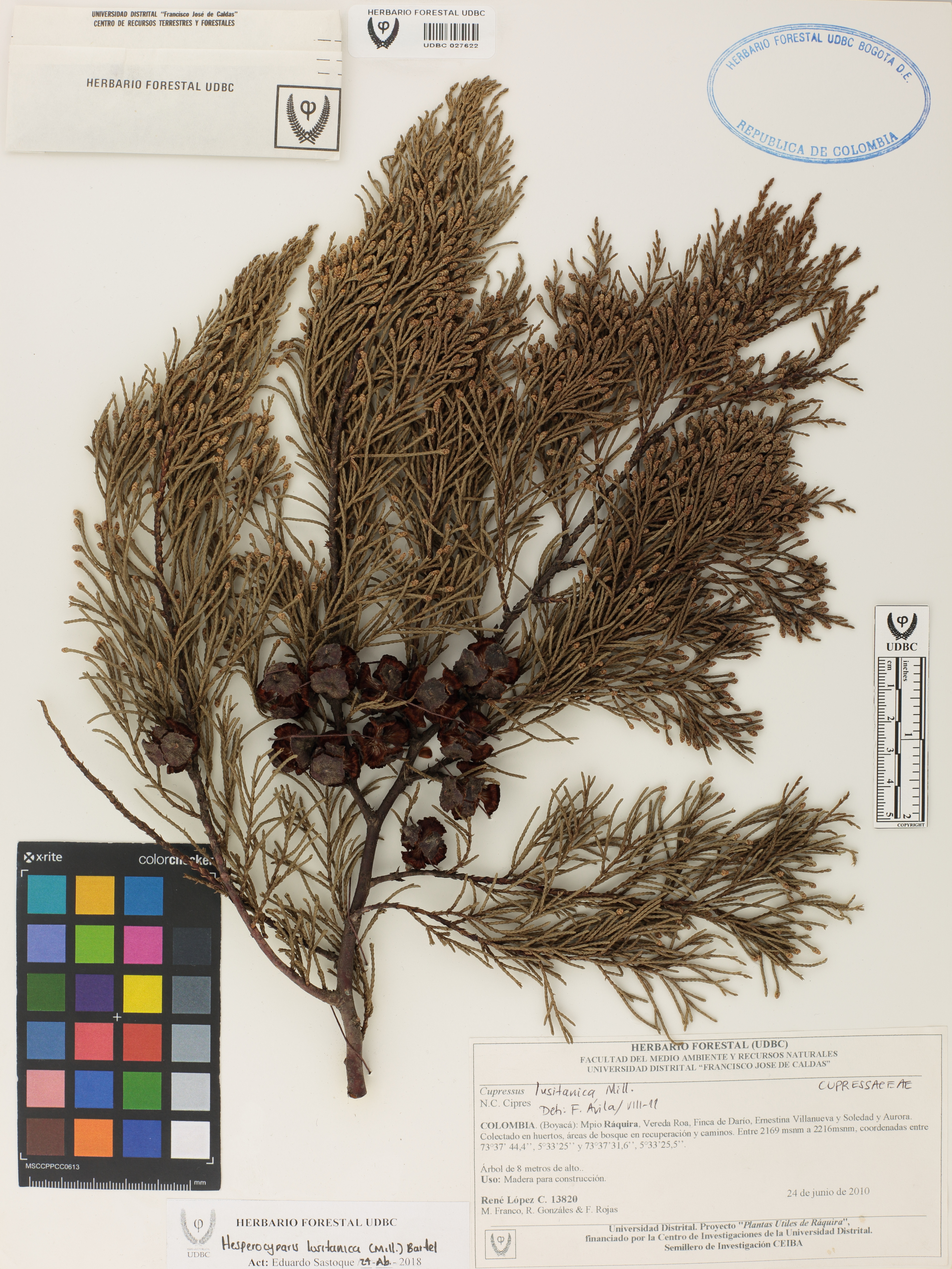 Fotografía del ejemplar López, R. 13820, determinado como Hesperocyparis lusitanica en el año 2011