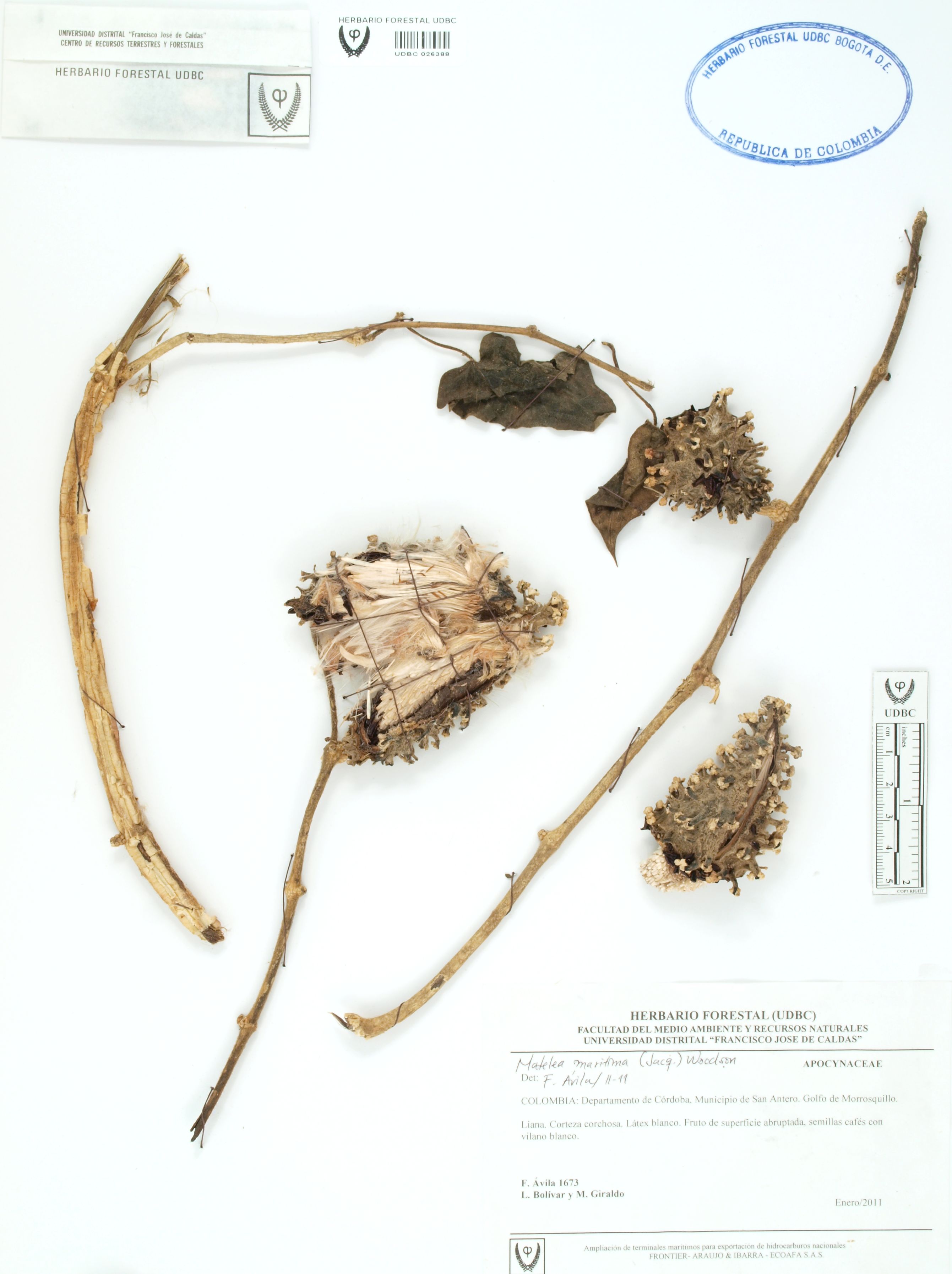Fotografía del ejemplar Ávila, F. 1673, determinado como Matelea maritima en el año 2011