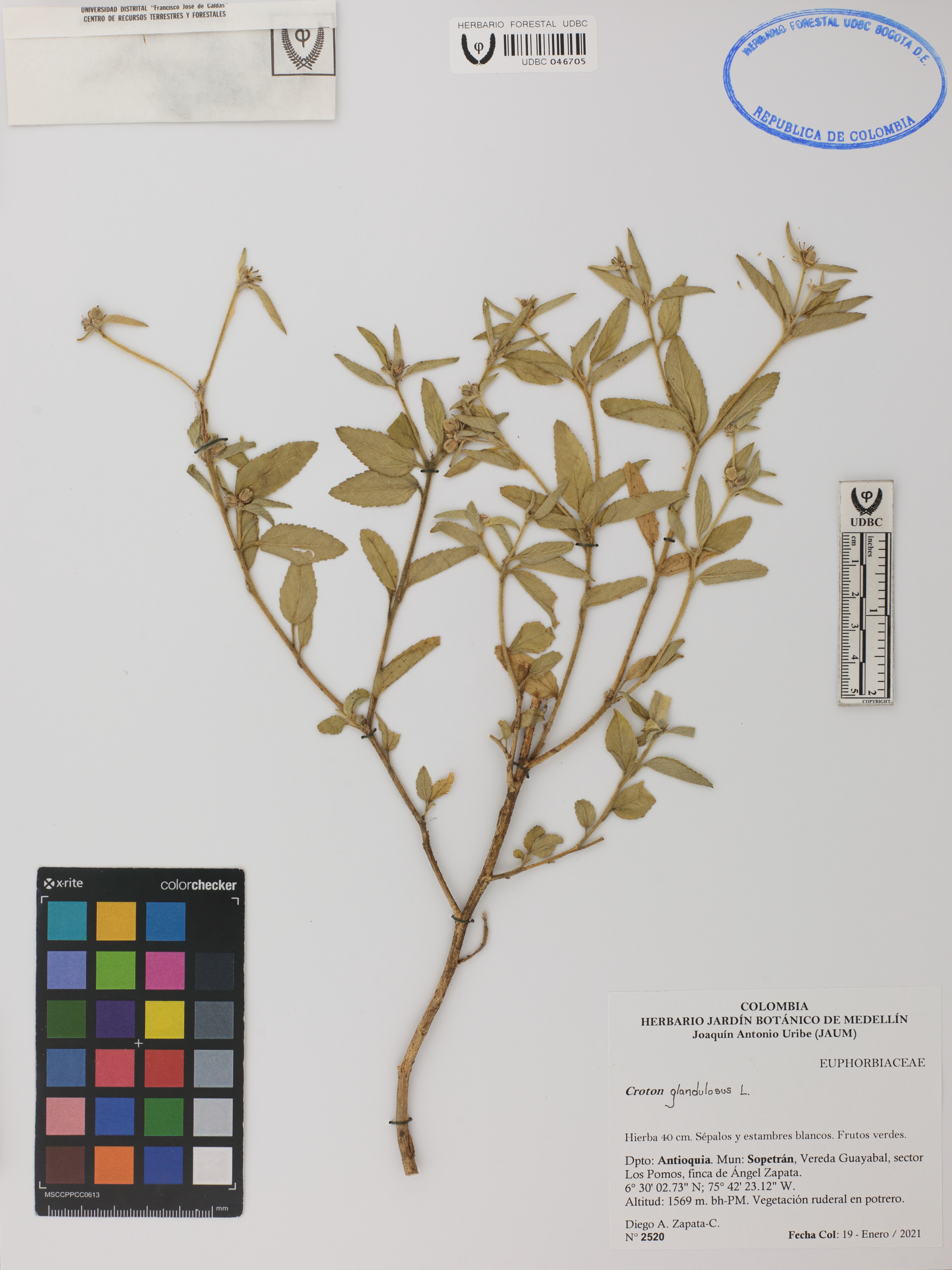 Fotografía del ejemplar Zapata-C., D. 2520, determinado como Croton glandulosus en el año 2022