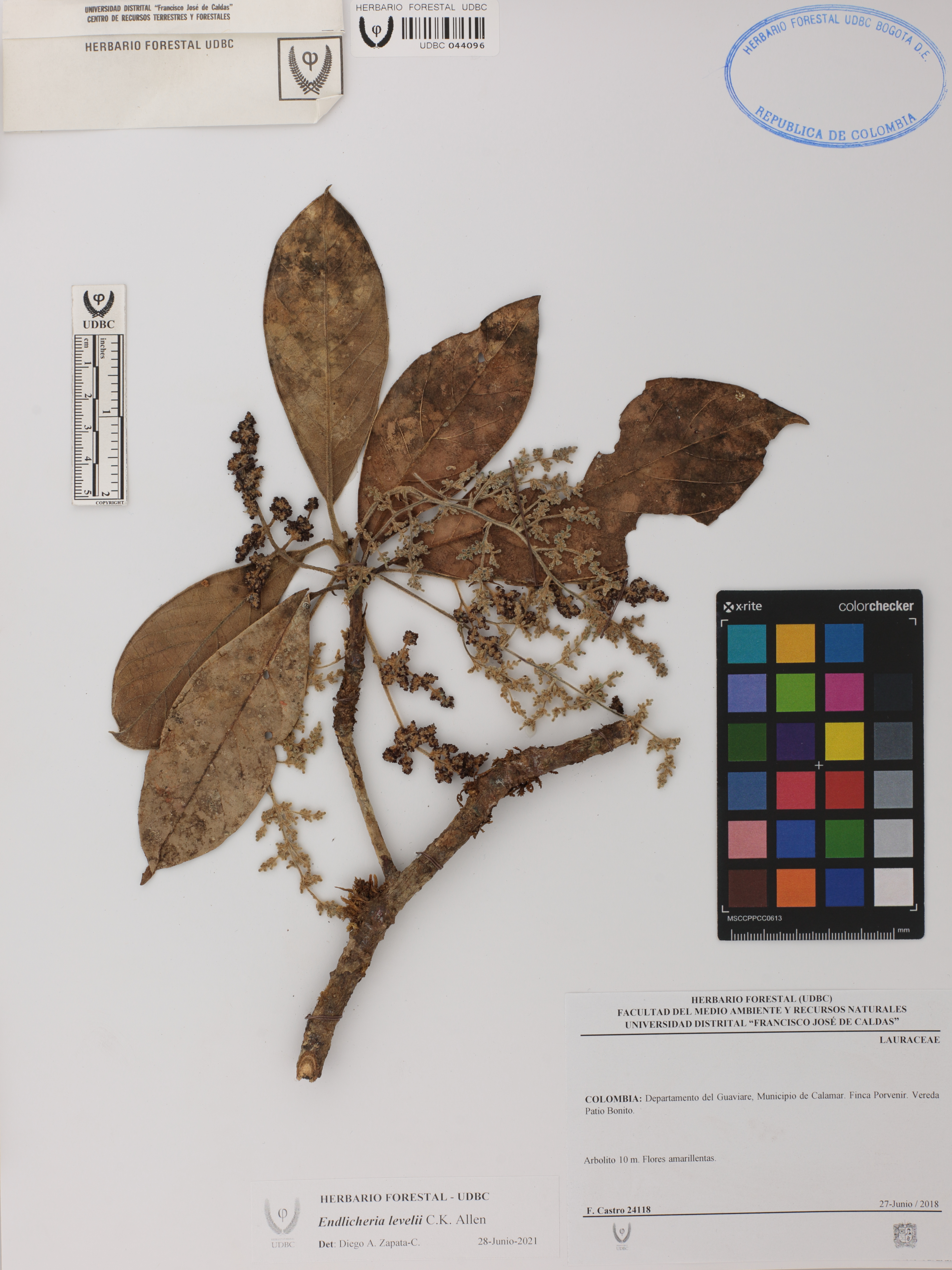 Fotografía del ejemplar Castro, F. 24118, determinado como Endlicheria levelii en el año 2021