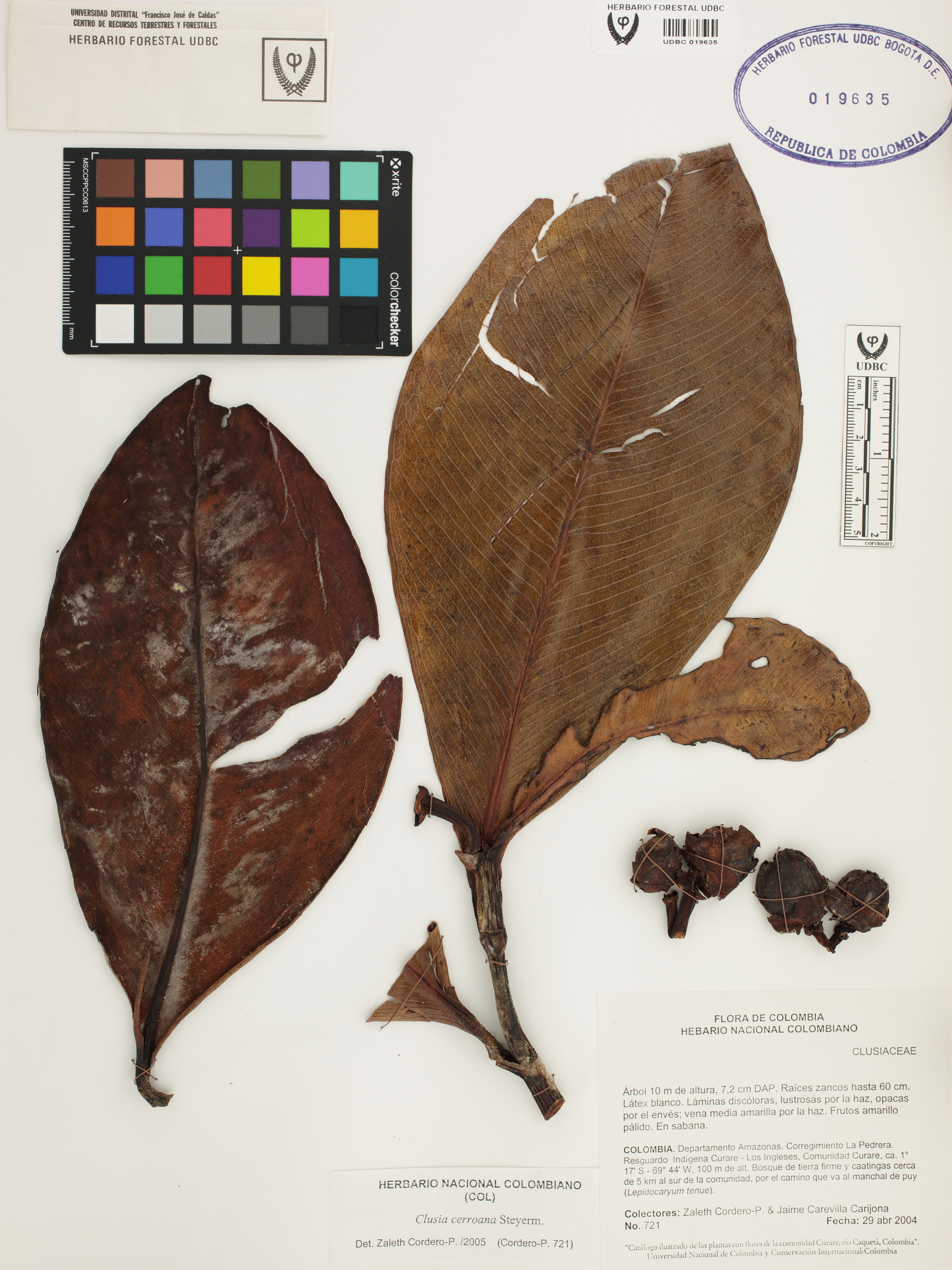 | dc.description | Fotografía del ejemplar Cordero-P., Z. 721, determinado como Clusia cerroana en el año 2005 | |