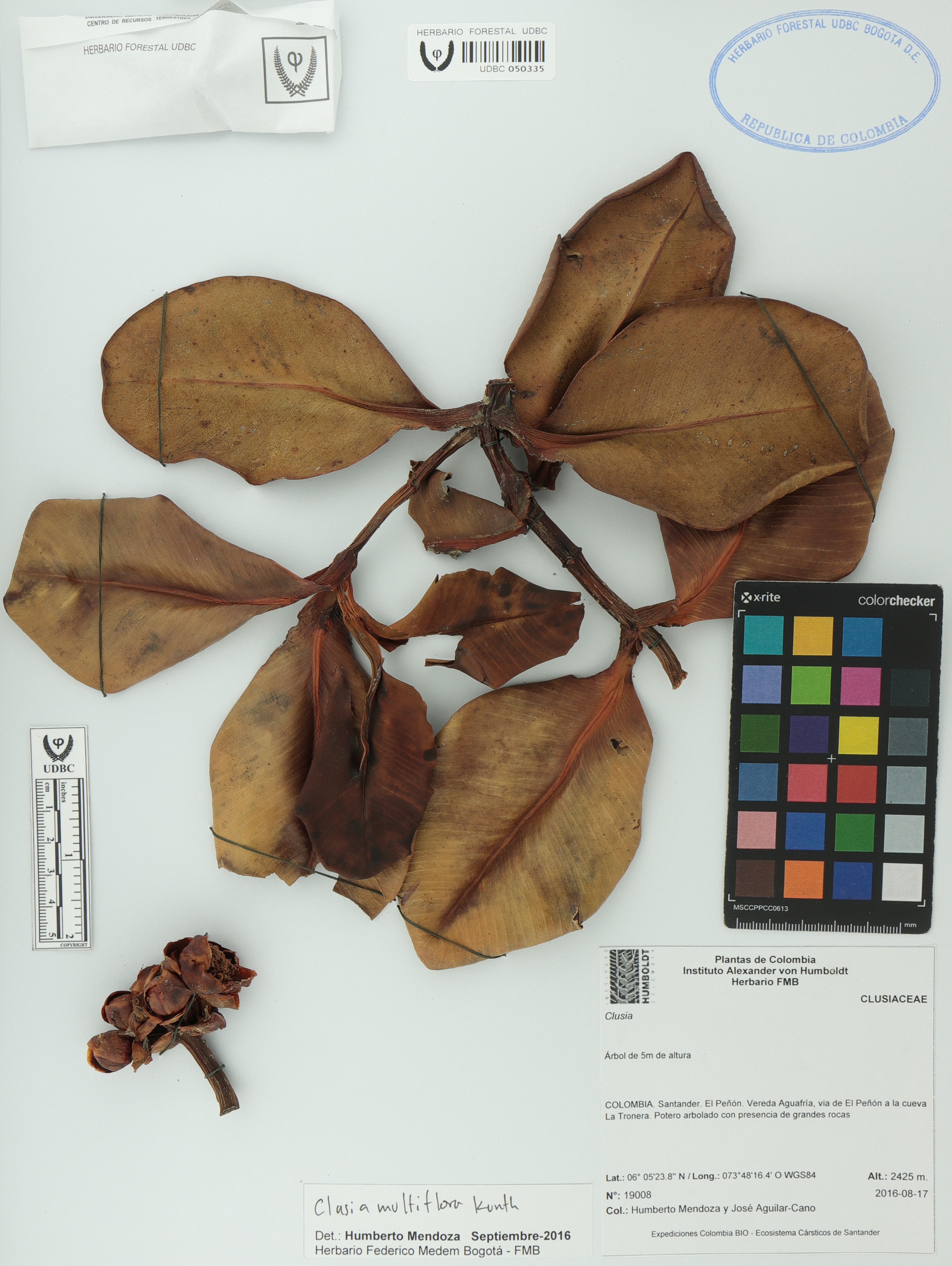Fotografía del ejemplar Mendoza, H. 19008, determinado como Clusia multiflora en el año 2016