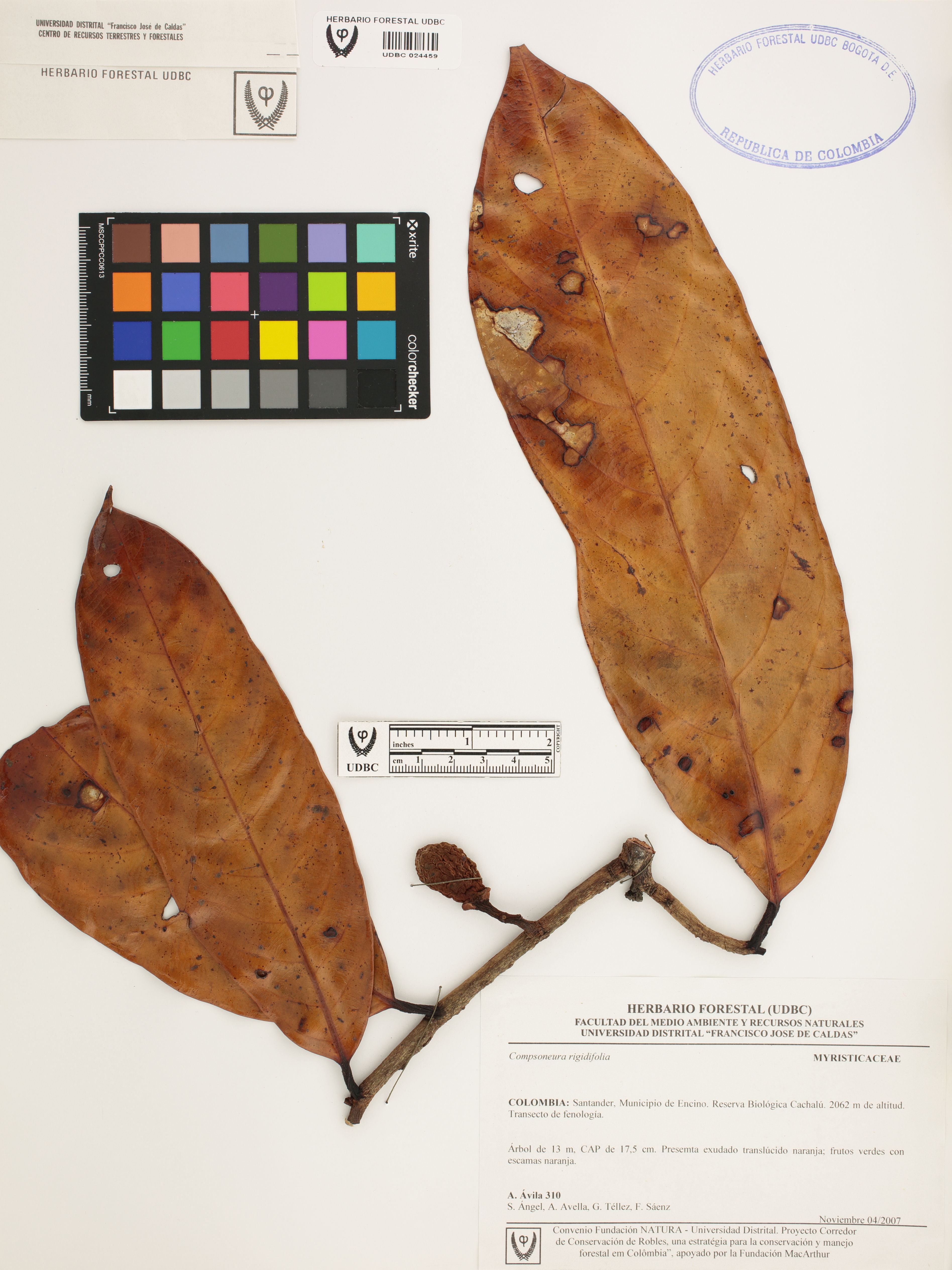 Fotografía del ejemplar Ávila, A. 310, determinado como Compsoneura rigidifolia