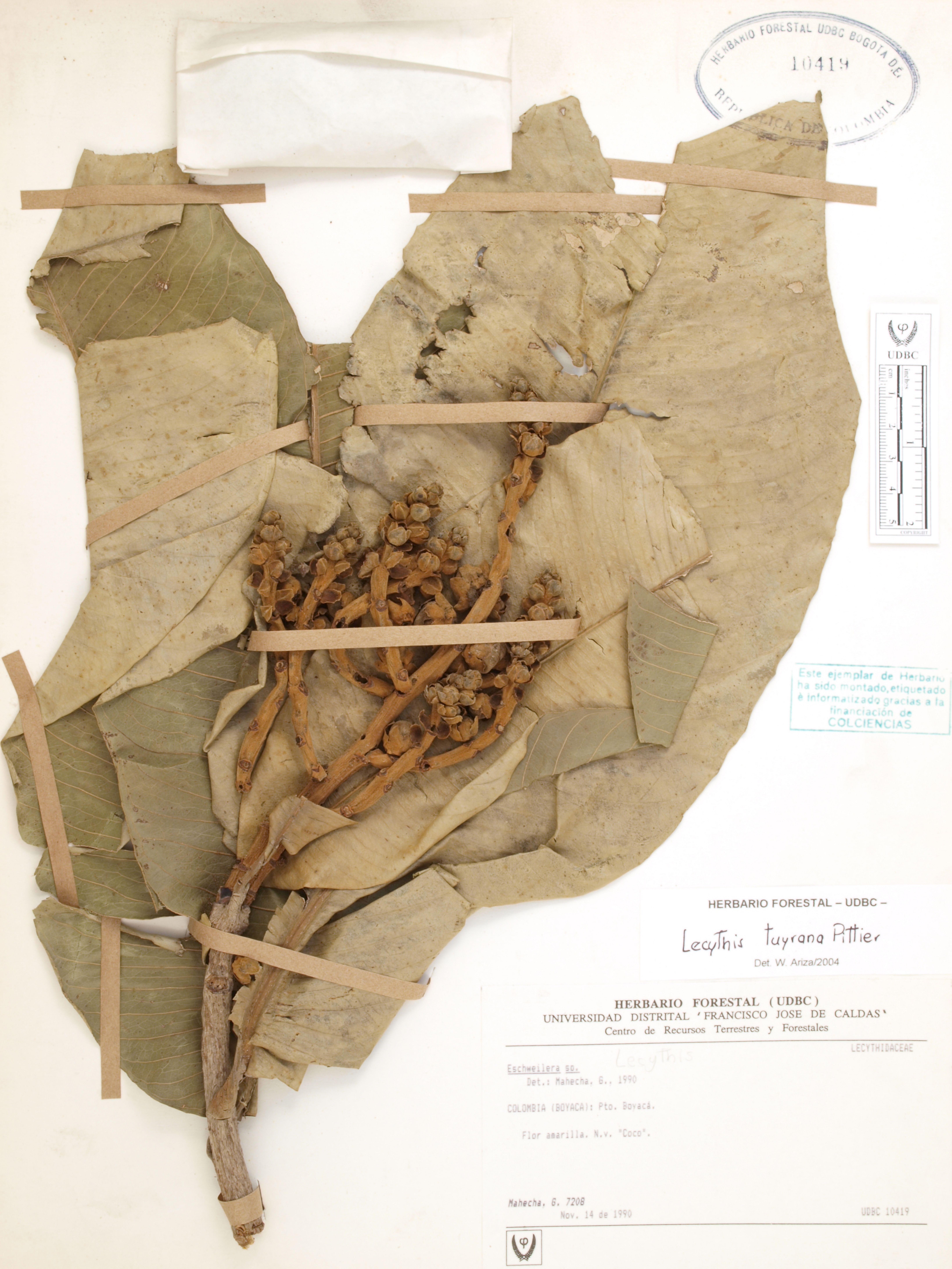 Fotografía del ejemplar Mahecha, G. 7208, determinado como Lecythis tuyrana en el año 2004