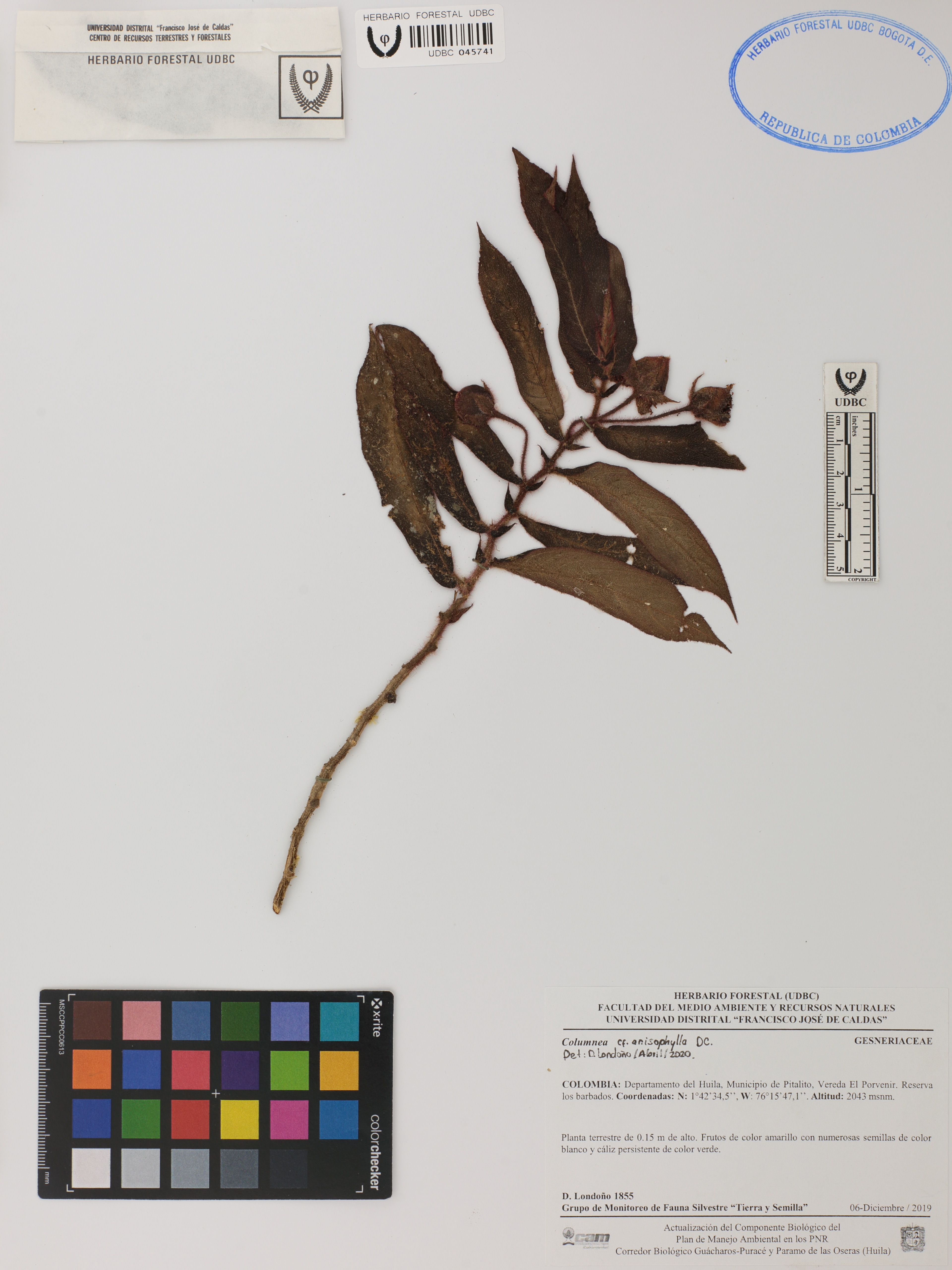 | dc.description | Fotografía del ejemplar Londoño, D. 1855, determinado como Columnea anisophylla en el año 2020 | |