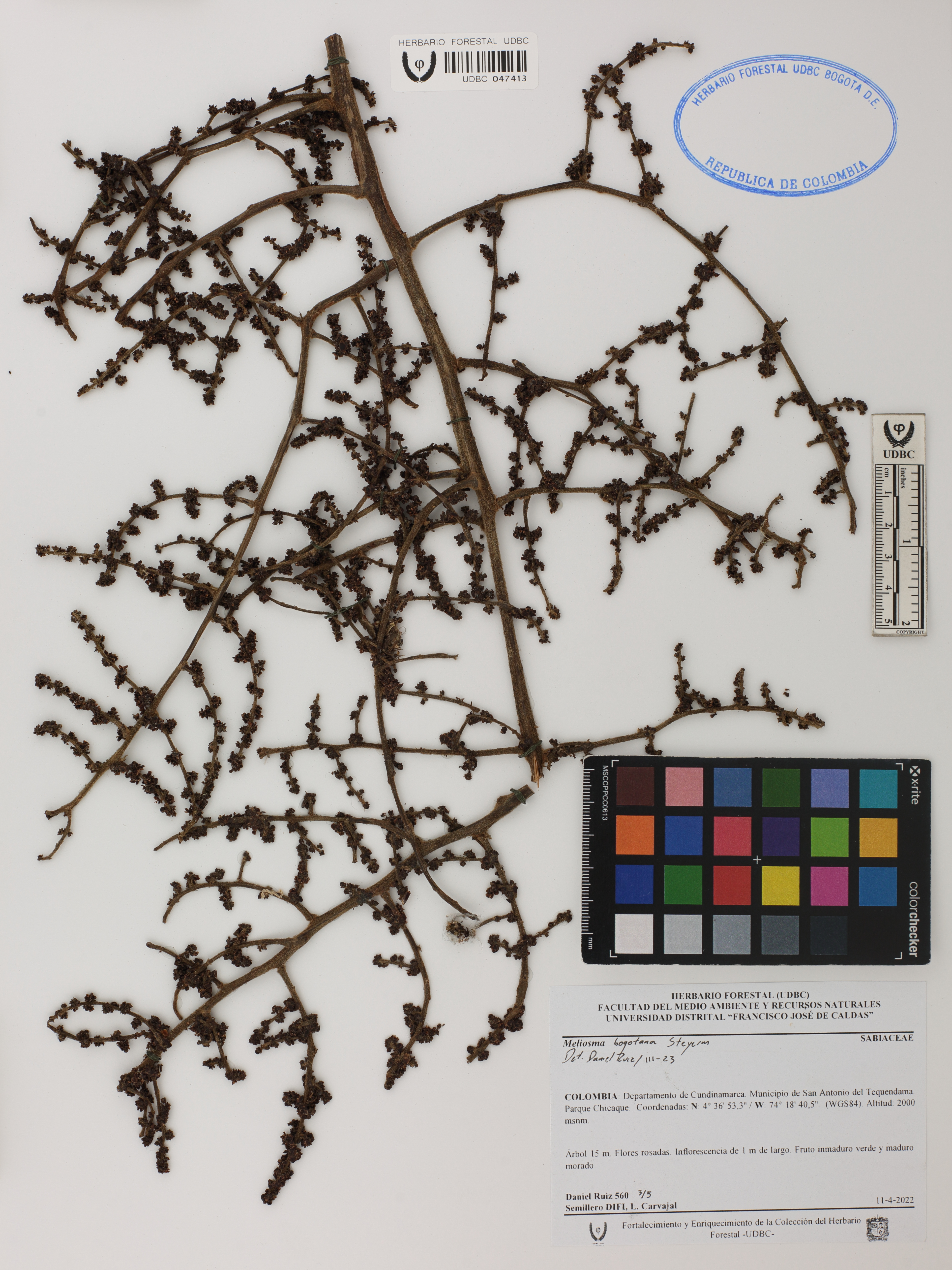 | dc.description | Fotografía del ejemplar Ruiz, Daniel 560, determinado como Meliosma bogotana en el año 2023 | |