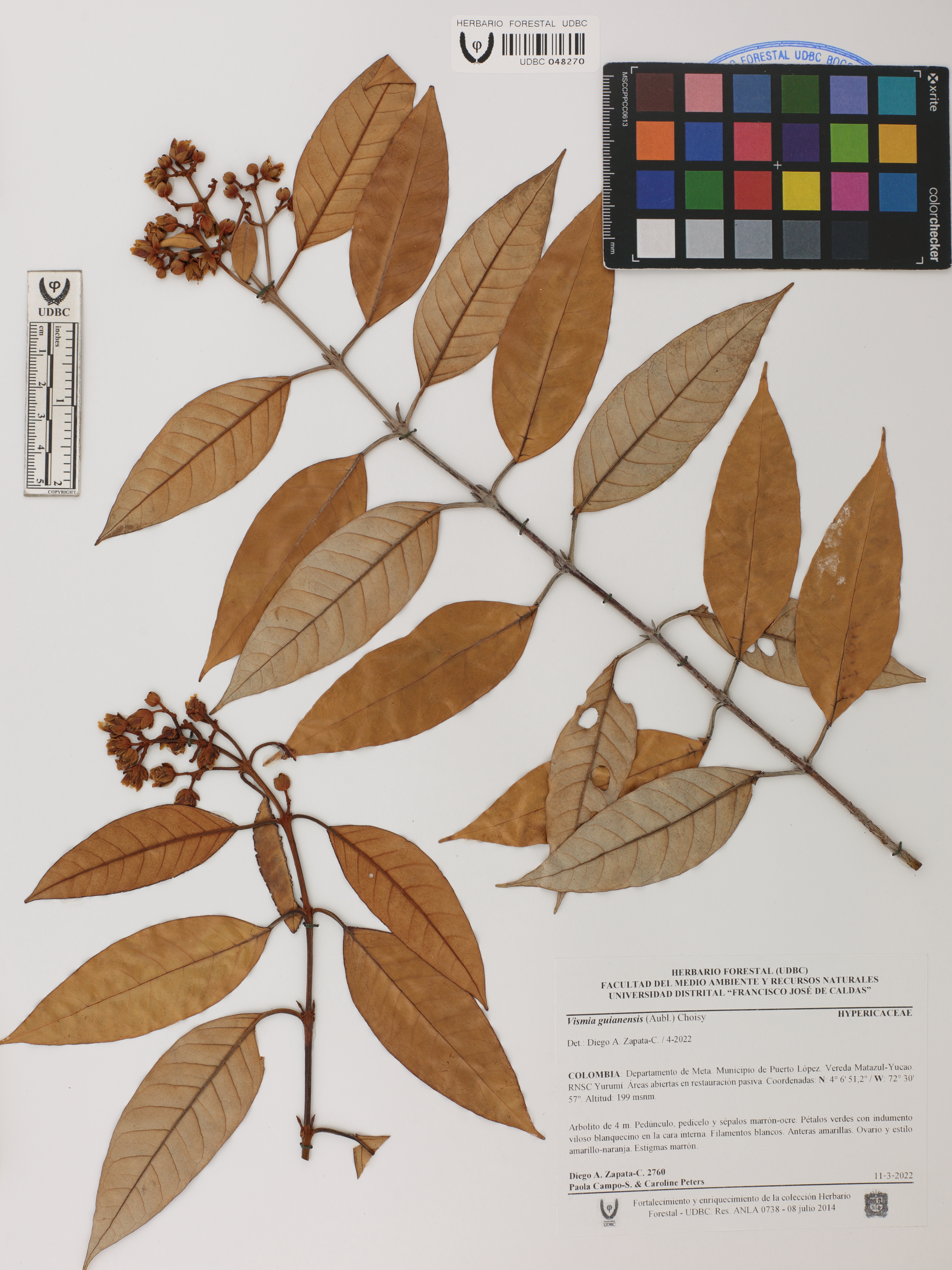 | dc.description | Fotografía del ejemplar Zapata-C., D. 2760, determinado como Vismia guianensis en el año 2022 | |