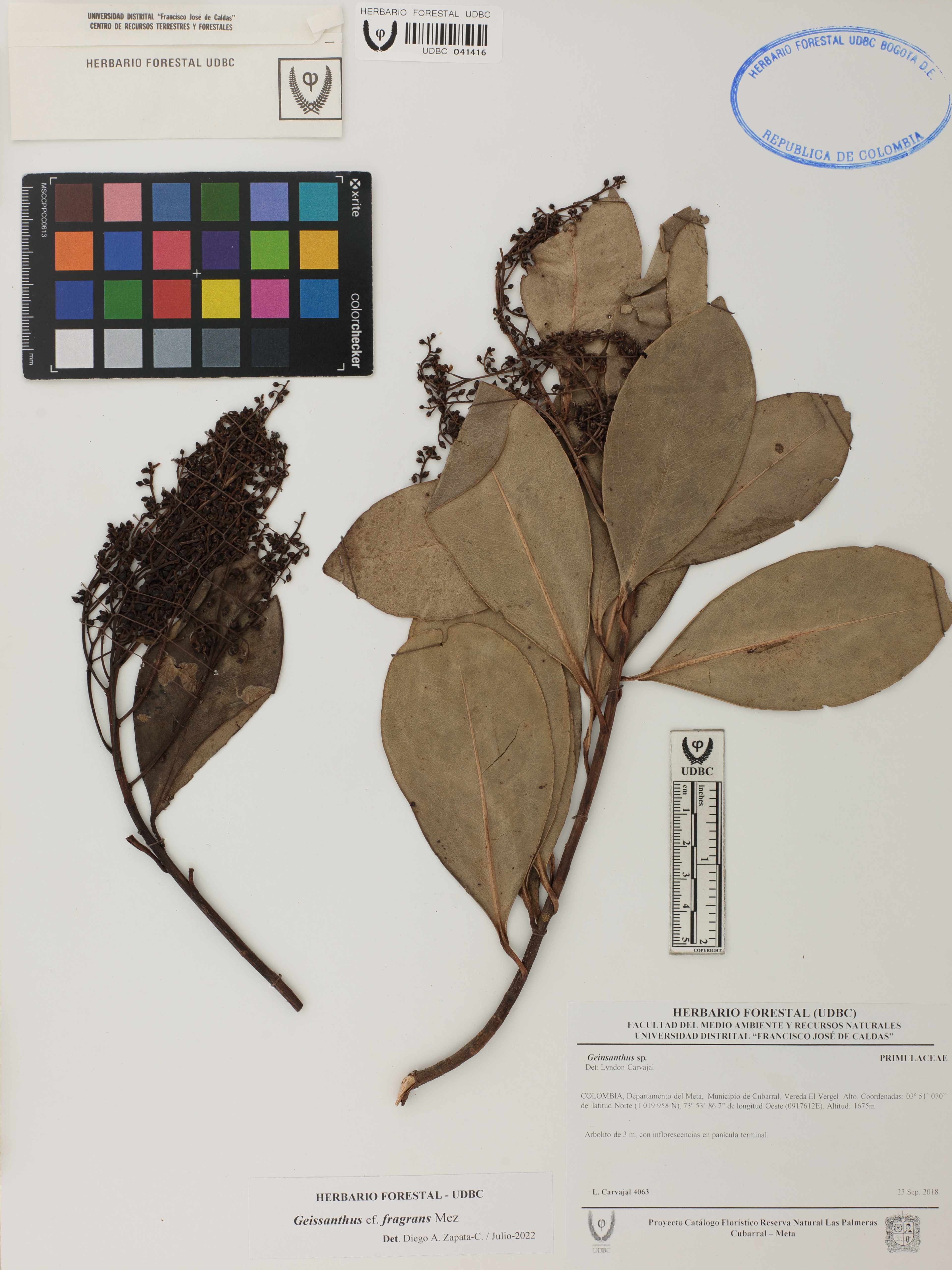 Fotografía del ejemplar Carvajal, L. 4063, determinado como Geissanthus fragrans en el año 2022