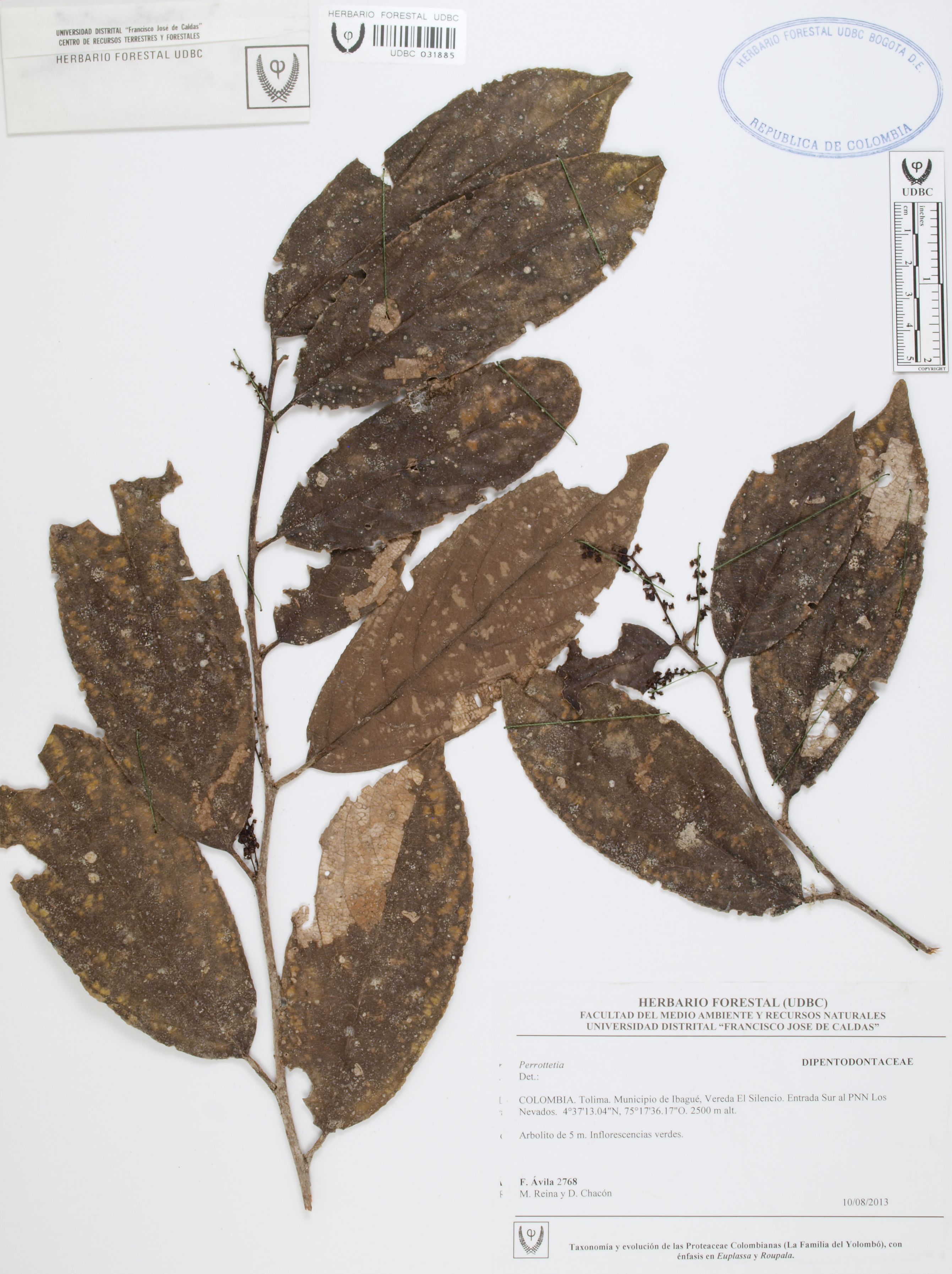 Fotografía del ejemplar Ávila, F. 2768, determinado como Perrottetia sp.