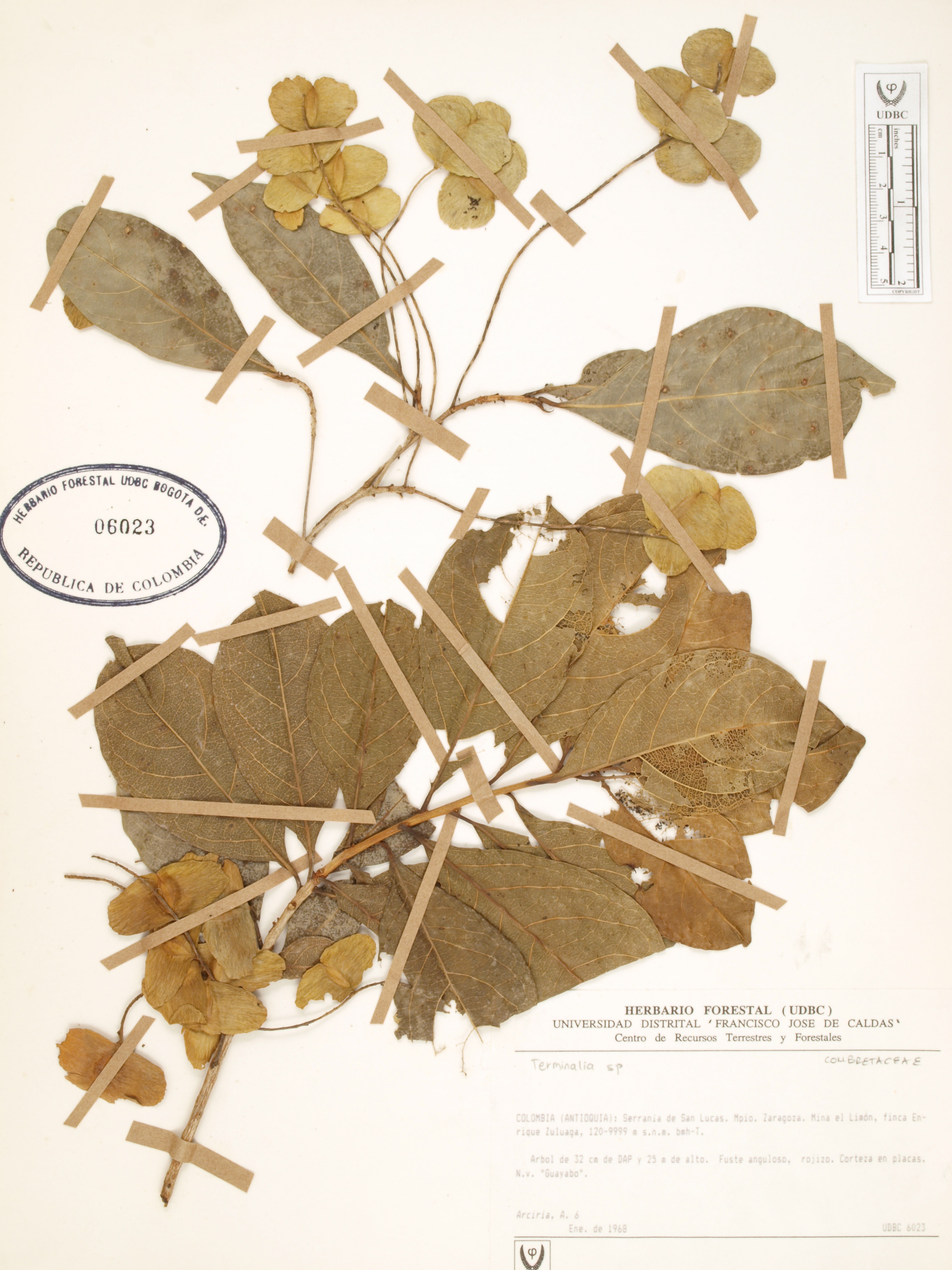 Fotografía del ejemplar Arciria, A. 6, determinado como Terminalia sp.