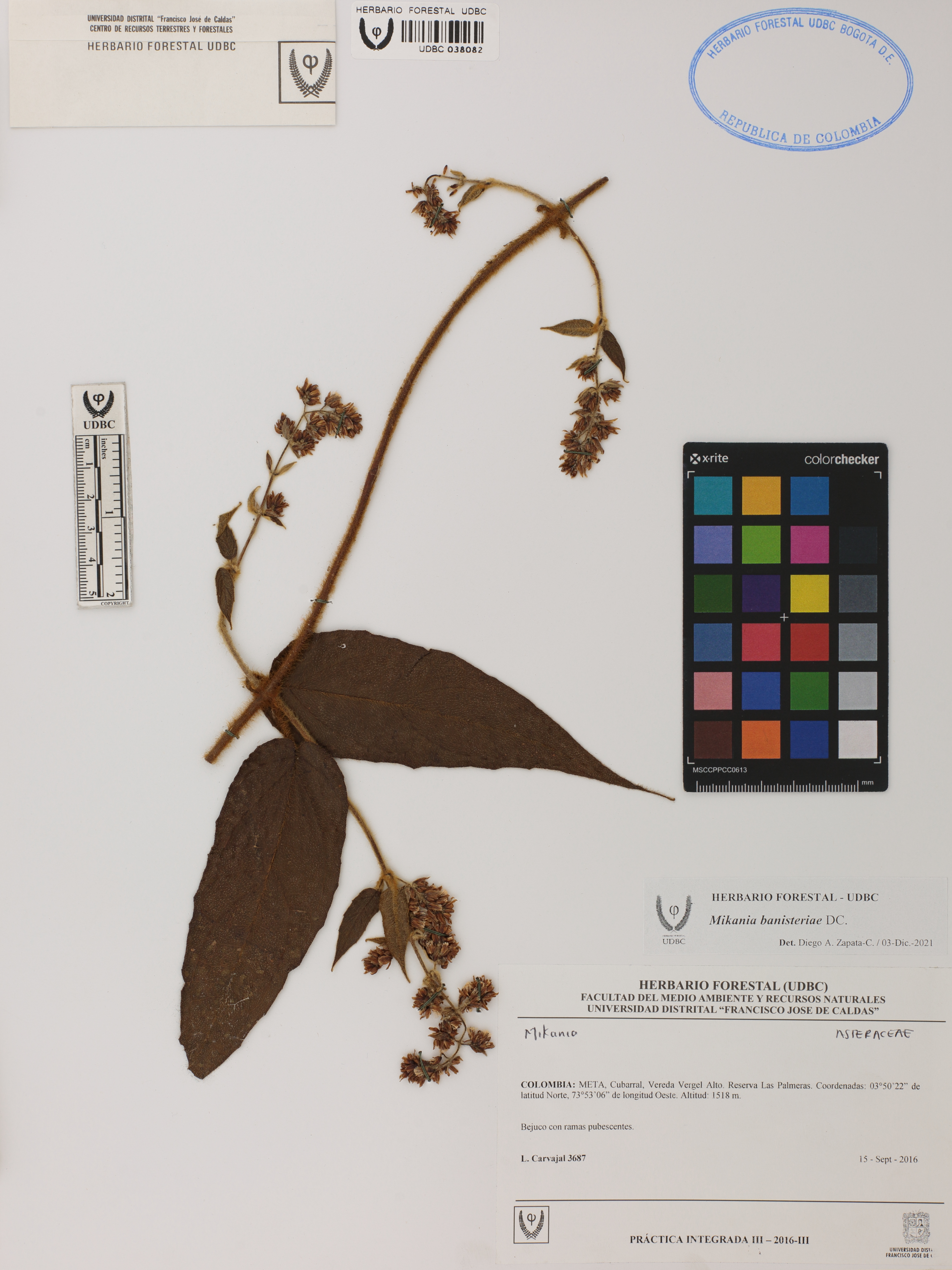 Fotografía del ejemplar Carvajal, L. 3687, determinado como Mikania banisteriae en el año 2021