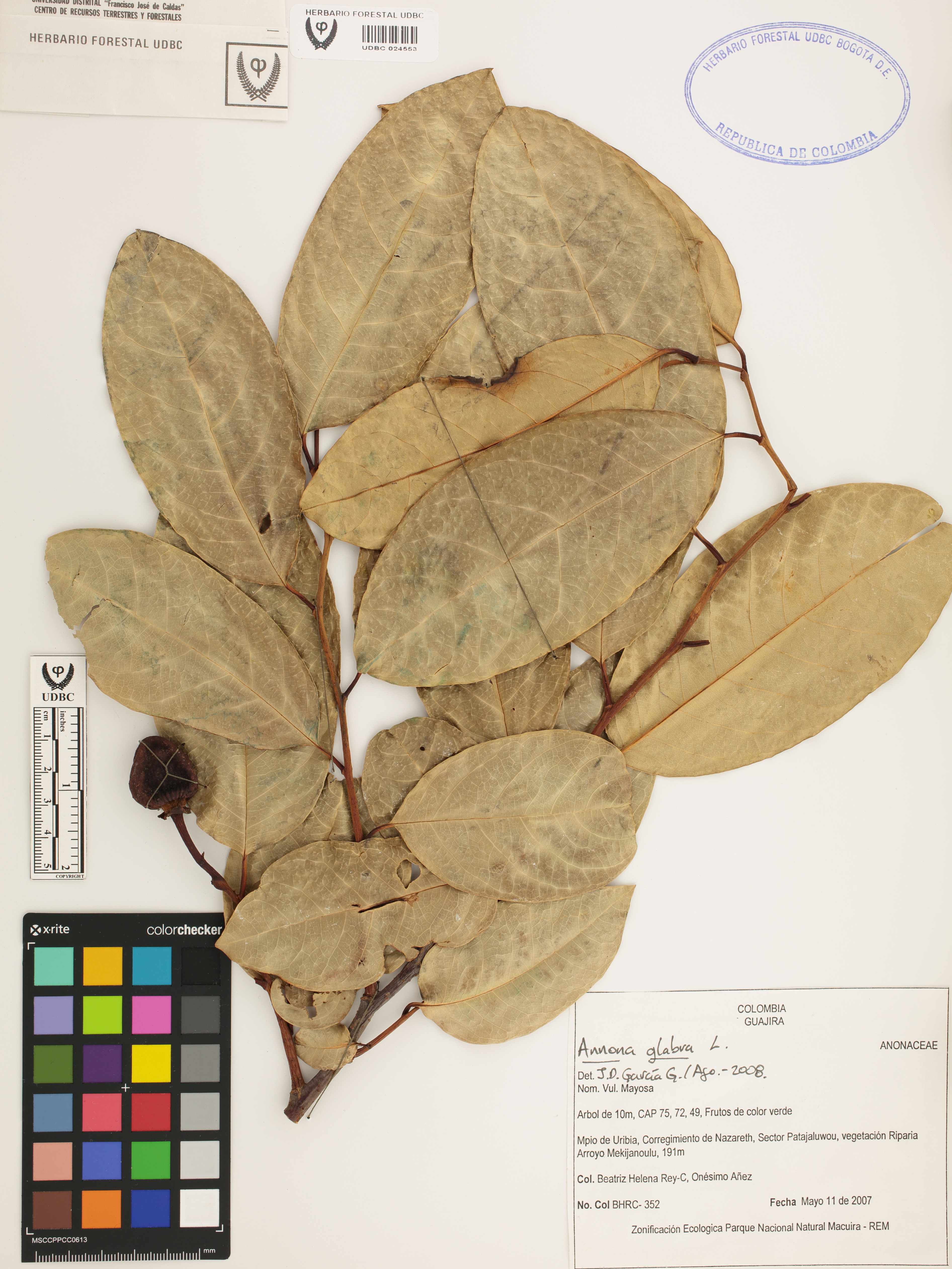 Fotografía del ejemplar Rey-C., B. 352, determinado como Annona glabra en el año 2008