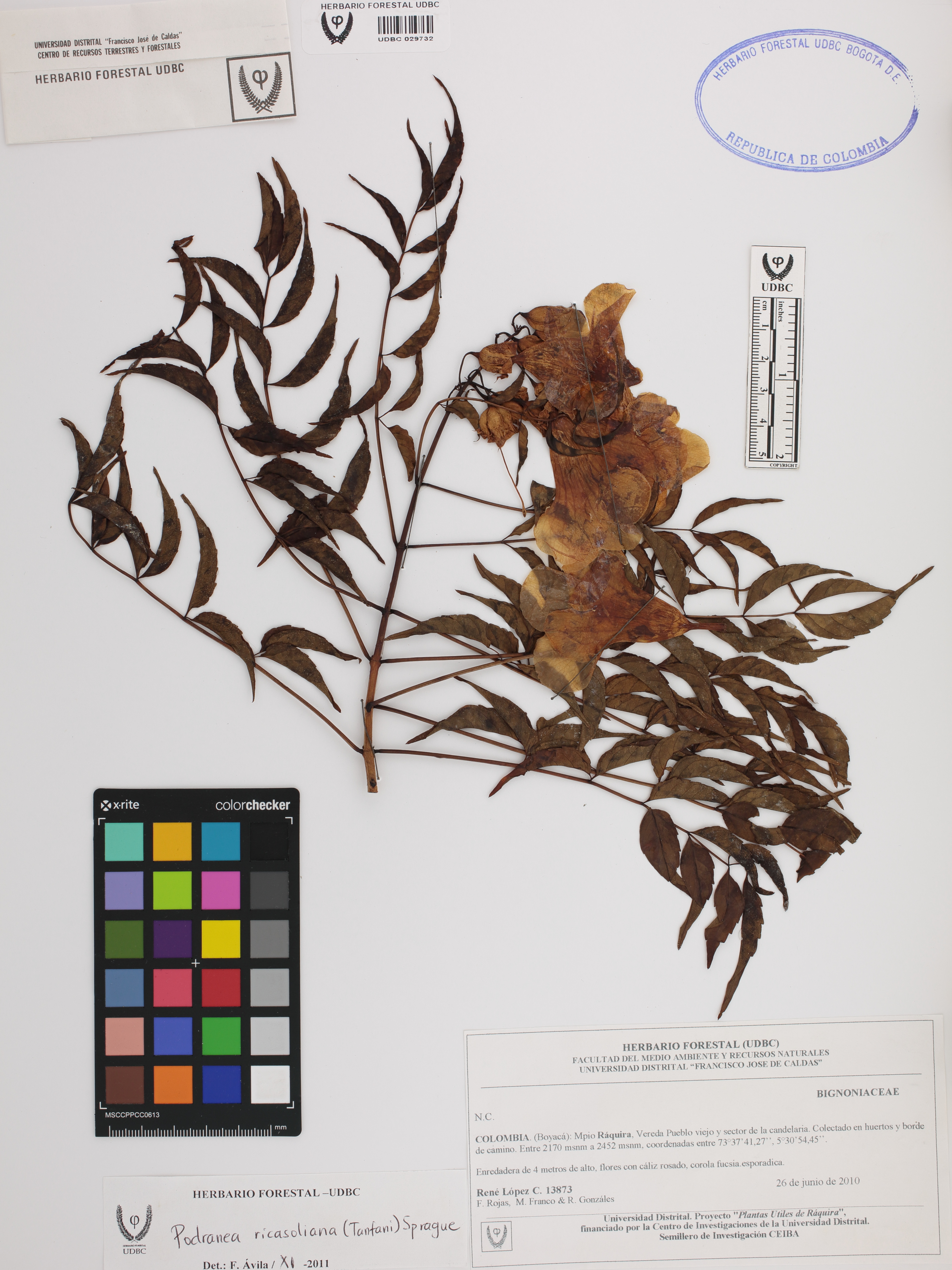 Fotografía del ejemplar López, R. 13873, determinado como Podranea ricasoliana en el año 2011