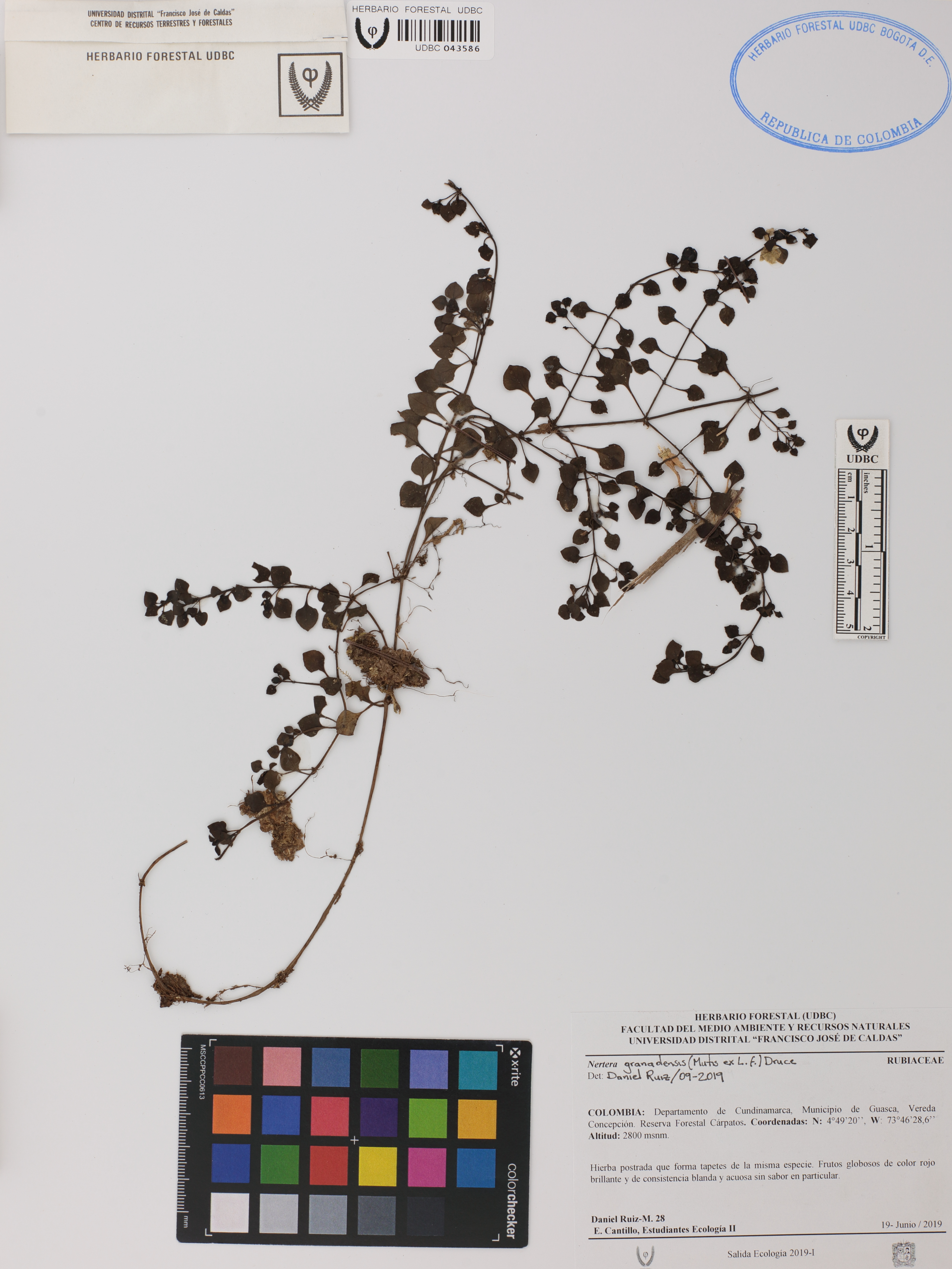 Fotografía del ejemplar Ruiz-M., D. 28, determinado como Nertera granadensis en el año 2019