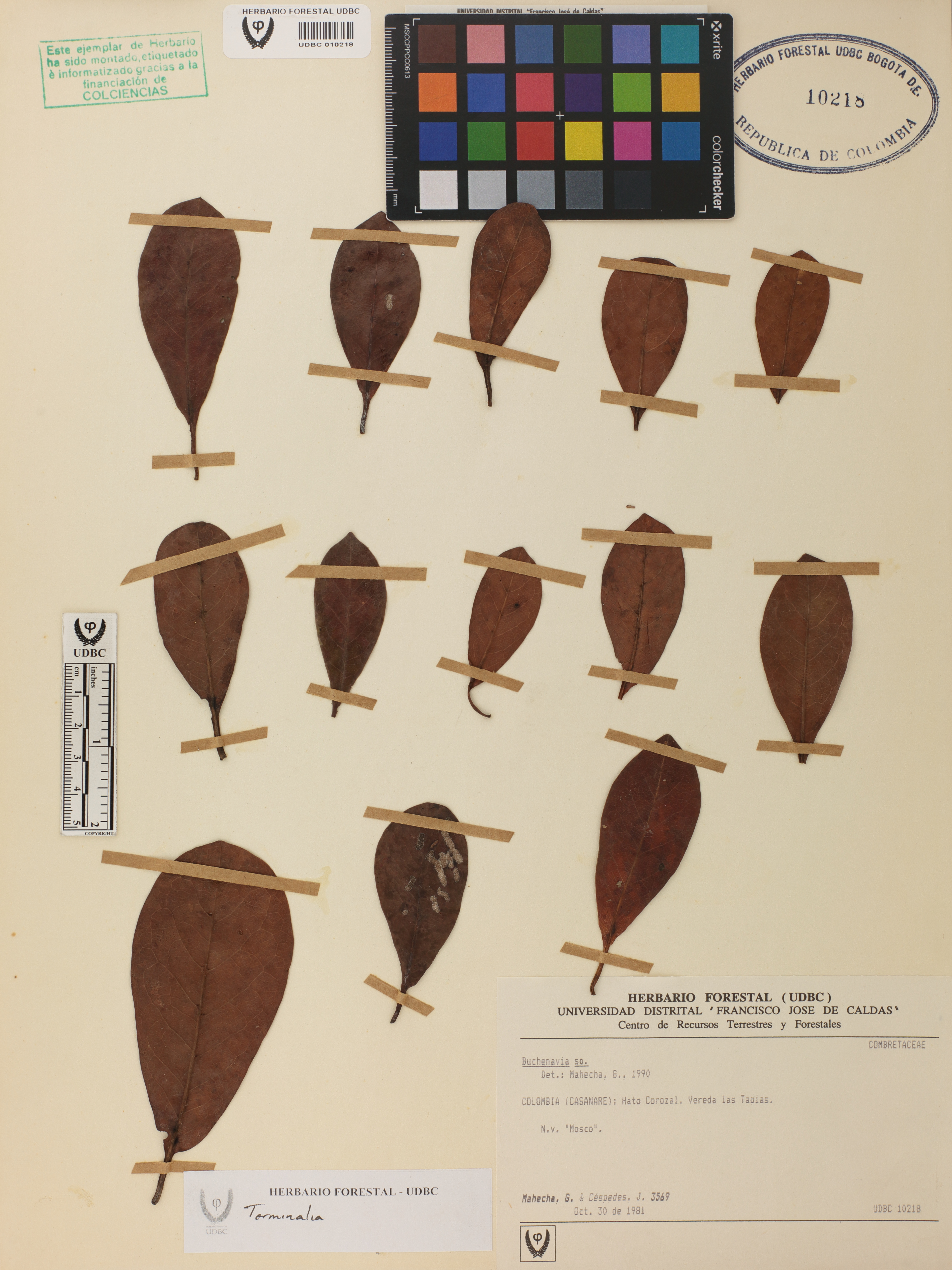 Fotografía del ejemplar Mahecha, G. 3569, determinado como Terminalia sp. en el año 1990