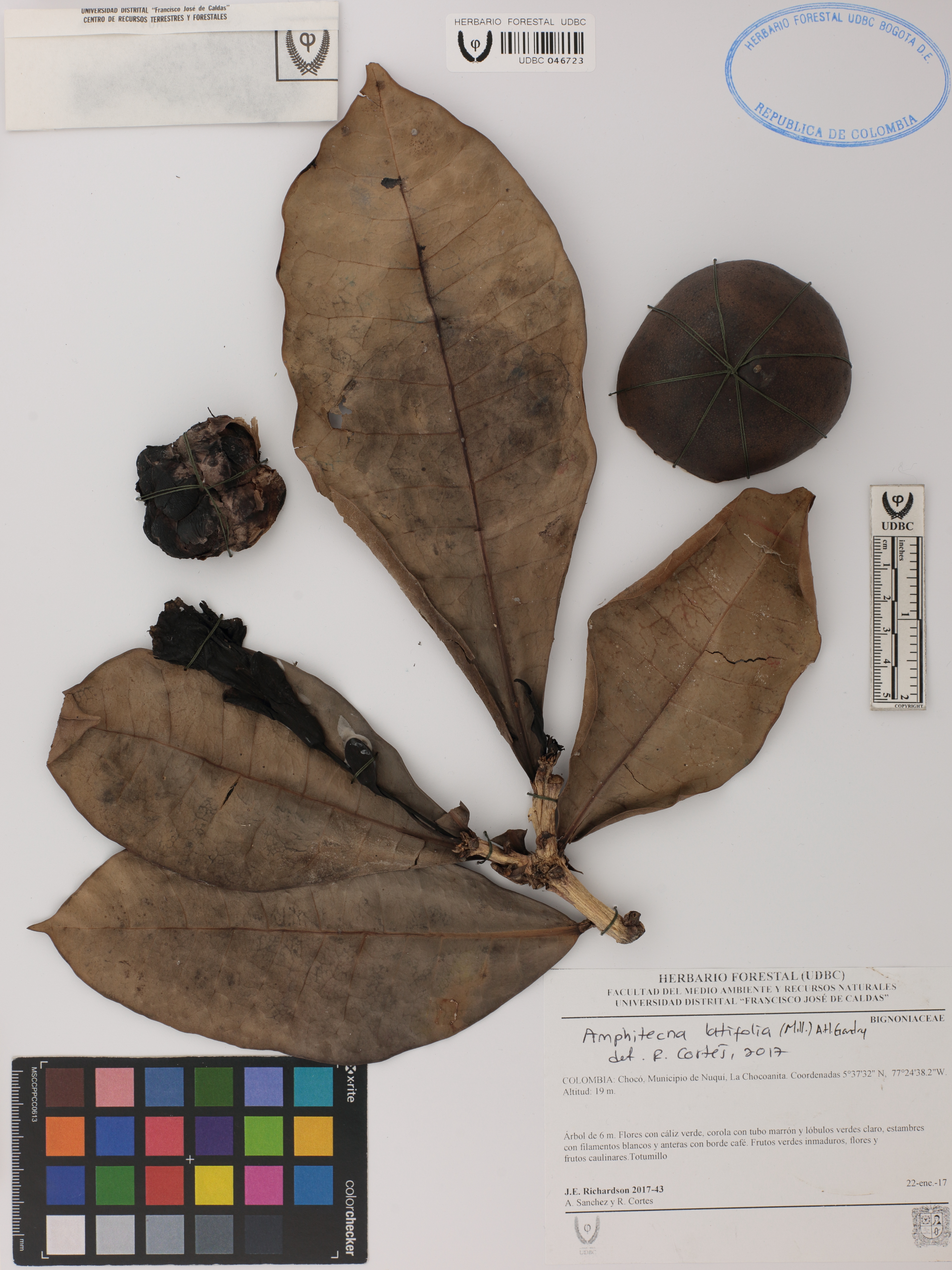 Fotografía del ejemplar Richardson, J. 43, determinado como Amphitecna latifolia en el año 2017