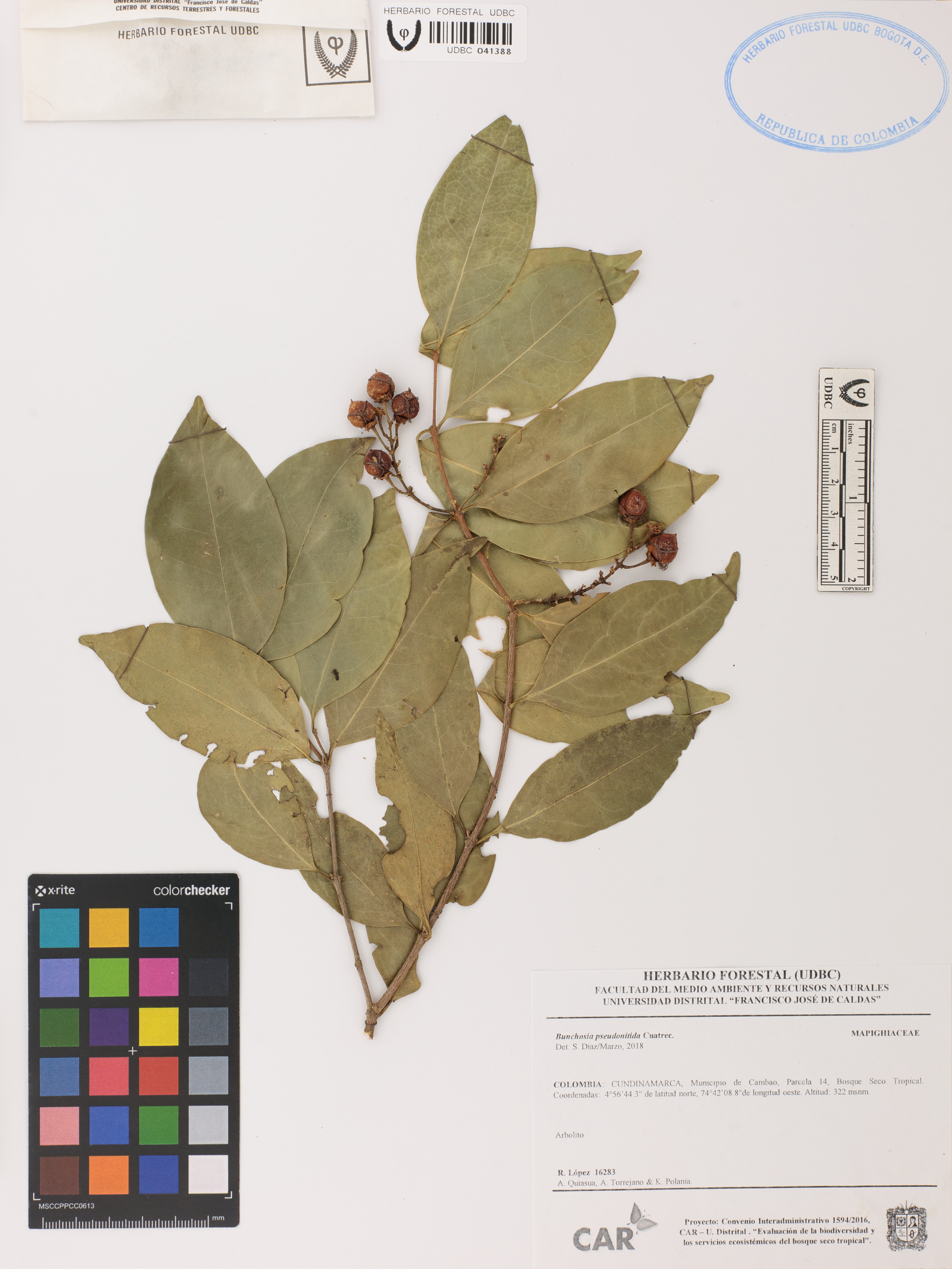Fotografía del ejemplar López, R. 16283, determinado como Bunchosia pseudonitida en el año 2018
